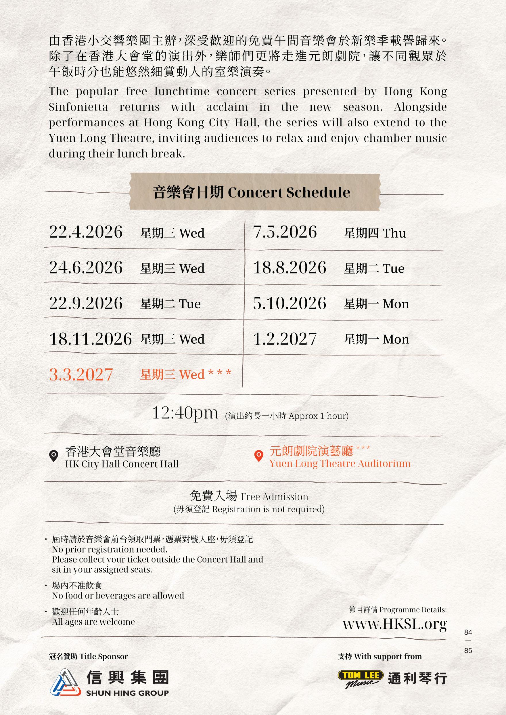 Hong Kong Sinfonietta: 2026/2027 Season Brochure
