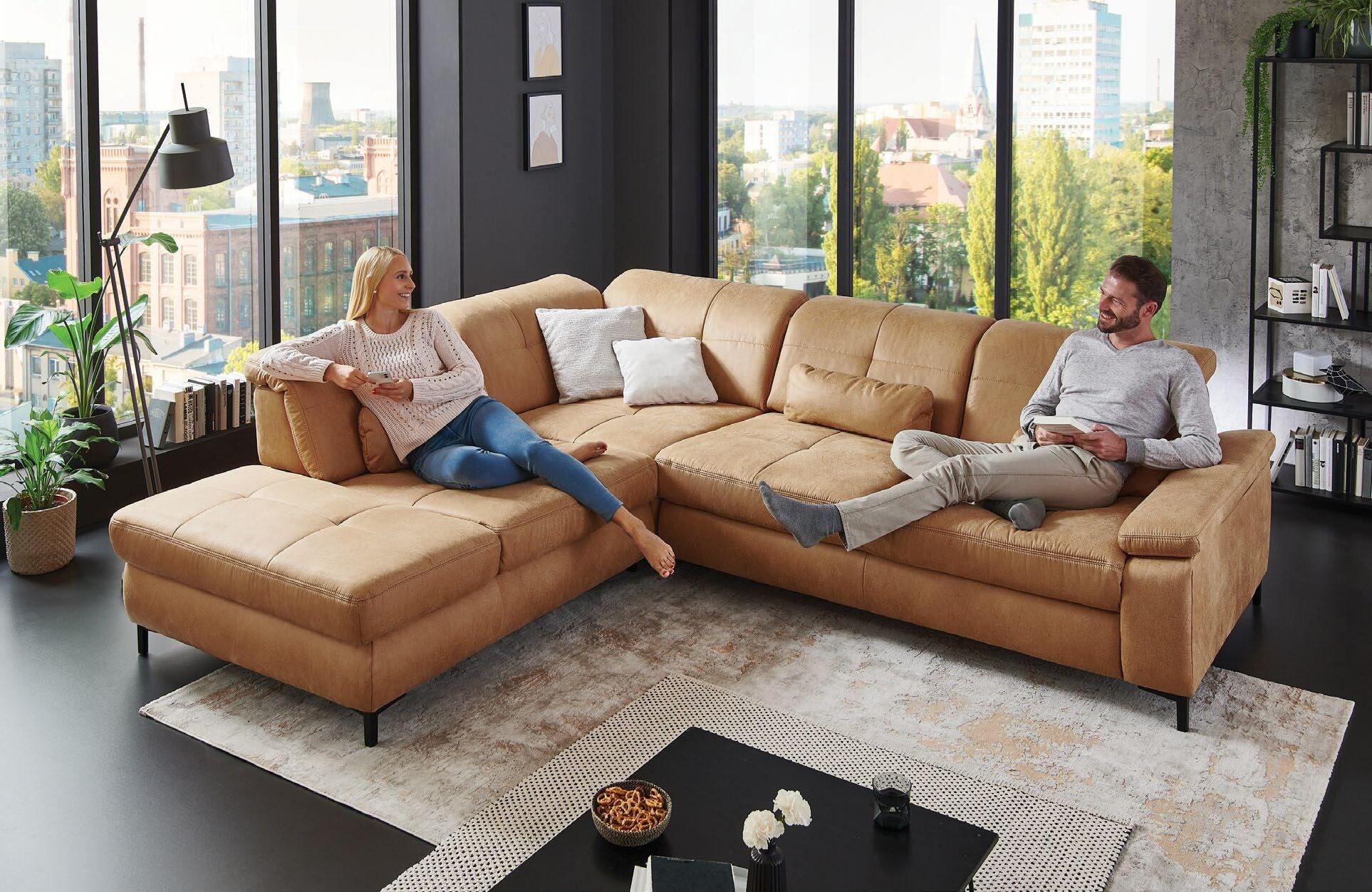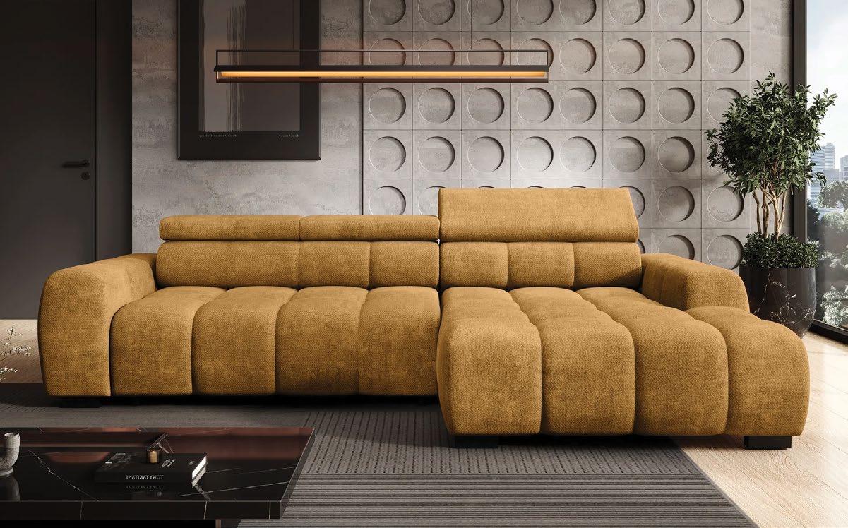 €2.622 Kotna sedežna DONATELLO, vzmeteno, 218x300cm, leva ali desna postavitev, ležišče, predal, 3x nastavljiv vzglavnik,