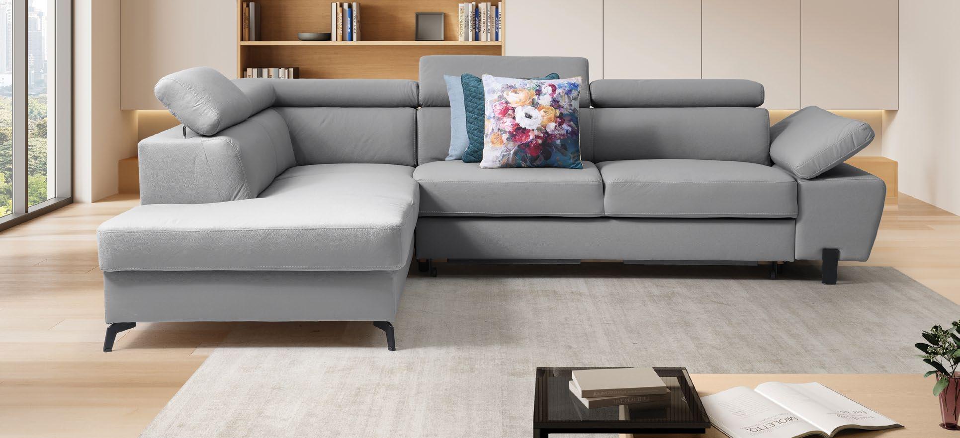 €4.620 Usnjena AREZZO, 261x171cm, leva ali desna postavitev, 1x električni počivalnik, 3x nastavljiv vzglavnik, usnje MACADAMIA 009/R. DOLP siva