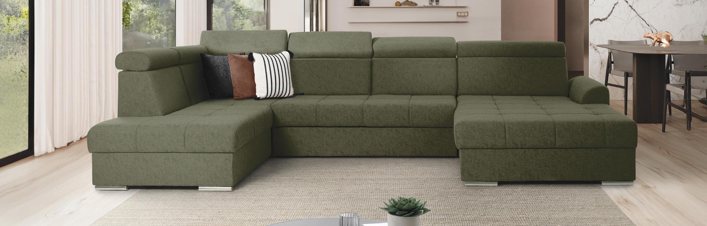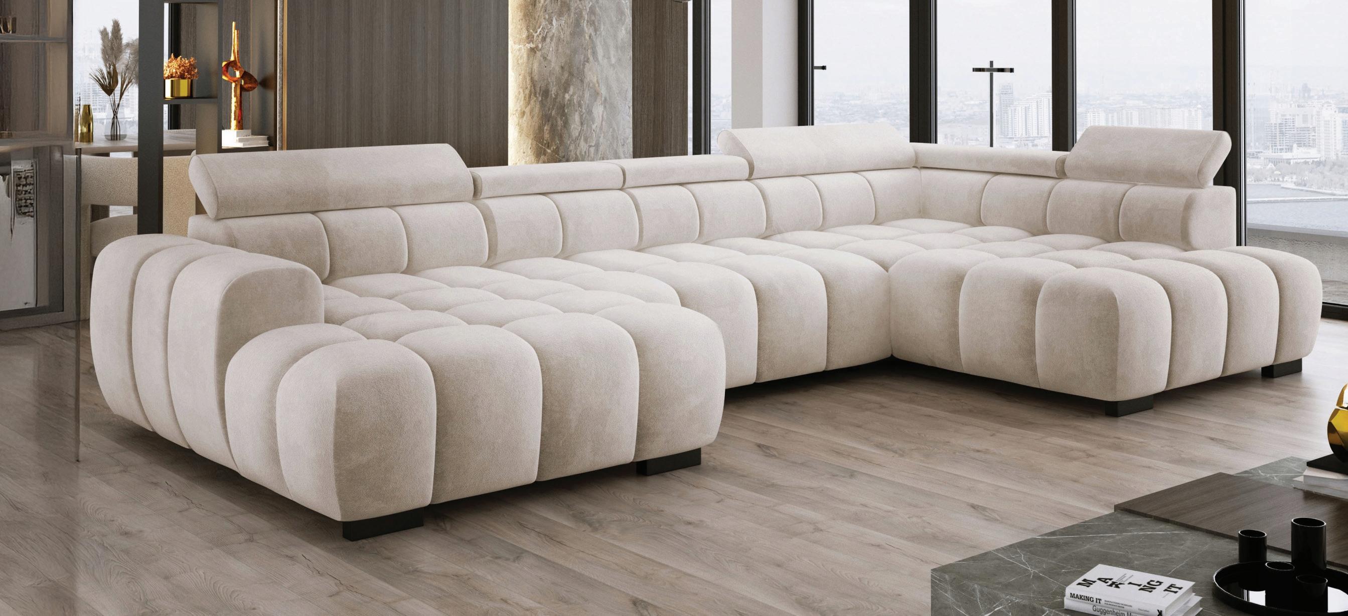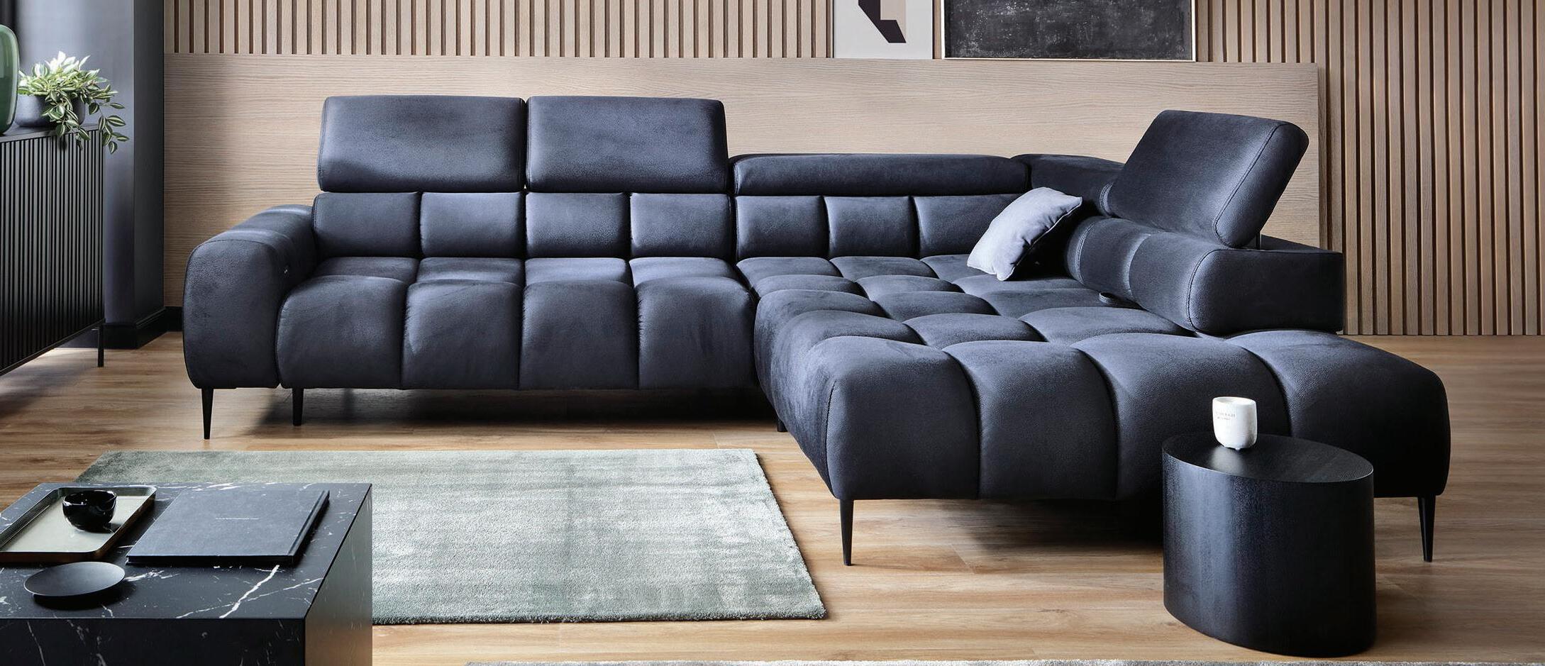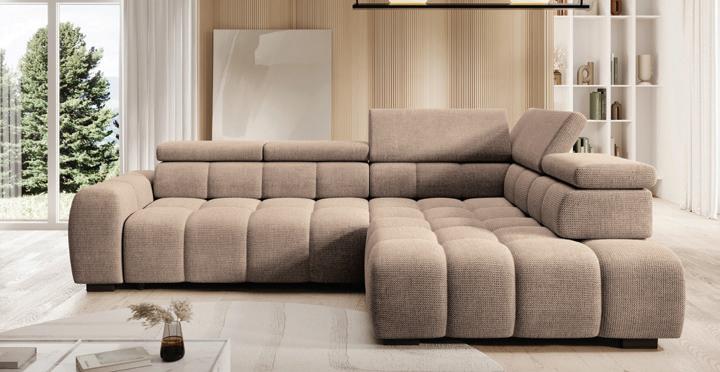 €2.279 Kotna sedežna garnitura CUBINO XL, 210x370x190cm, leva ali desna postavitev, ležišče, 2x predal, 4x nastavljiv vzglavnik, material COMB ali COSMIC, barve iz zaloge