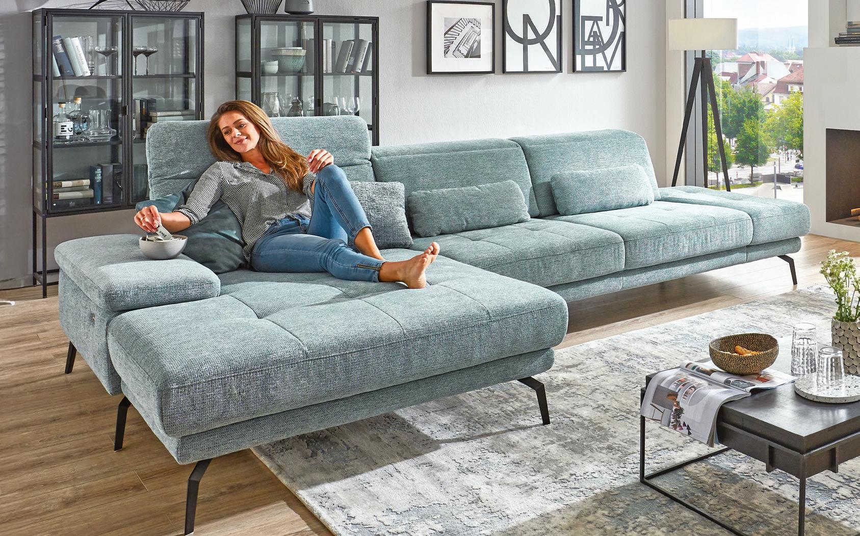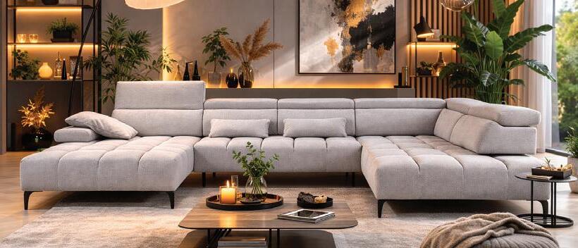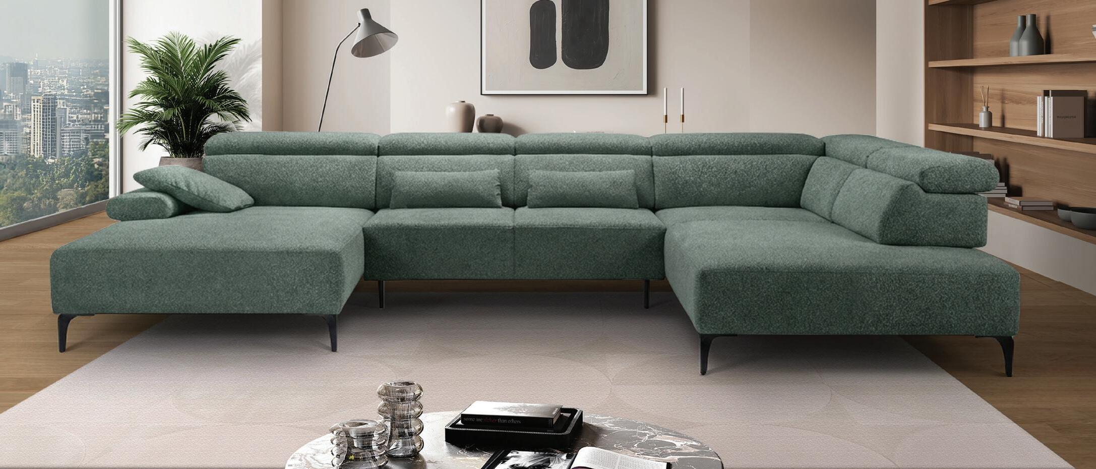 €2.279 Kotna sedežna garnitura CUBINO XL, 210x370x190cm, leva ali desna postavitev, ležišče, 2x predal, 4x nastavljiv vzglavnik, material COMB ali COSMIC, barve iz zaloge
