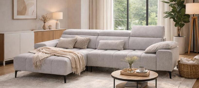 €2.759 Kotna sedežna garnitura IVONNA 163x289x213cm, leva ali desna postavitev, mat.kat. D DELUXE različne barve. Ostali materiali, kategorije materialov, električno pomičen počivalnik, ležišče, funkcija v kotu, vzglavniki in ostale funkcije za doplačilo.