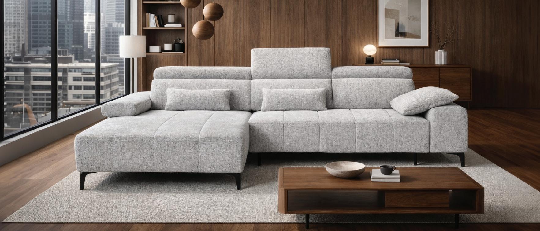 €2.784 Kotna OTTAWA, 210x242cm, 2x pomično hrbtišče, mat. kat. dva NEMO različne barve. Ostali materiali, kategorije materiala, ležišče, vzglavniki, ledvene blazine in ostale funkcije za doplačilo.