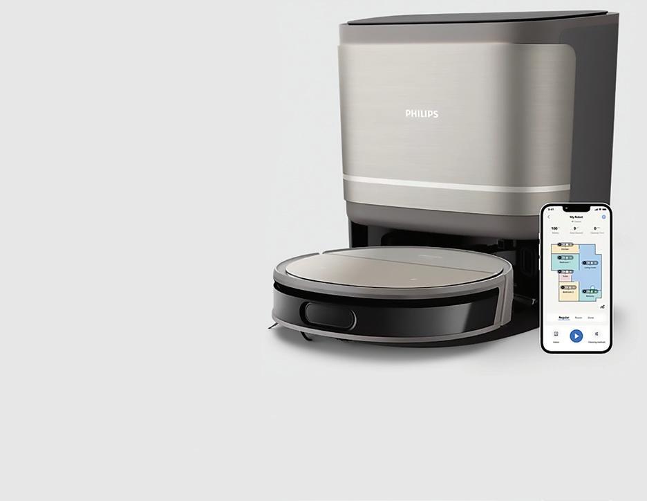 Tehnologija PowerCyclone Aqua za sesanje in pomivanje, laserska navigacija D-ToF,sesalna moč do 8000 Pa, samodejno praznjenje posode za prah, samodejno pranje in sušenje krpe, sistem proti zapletanju las