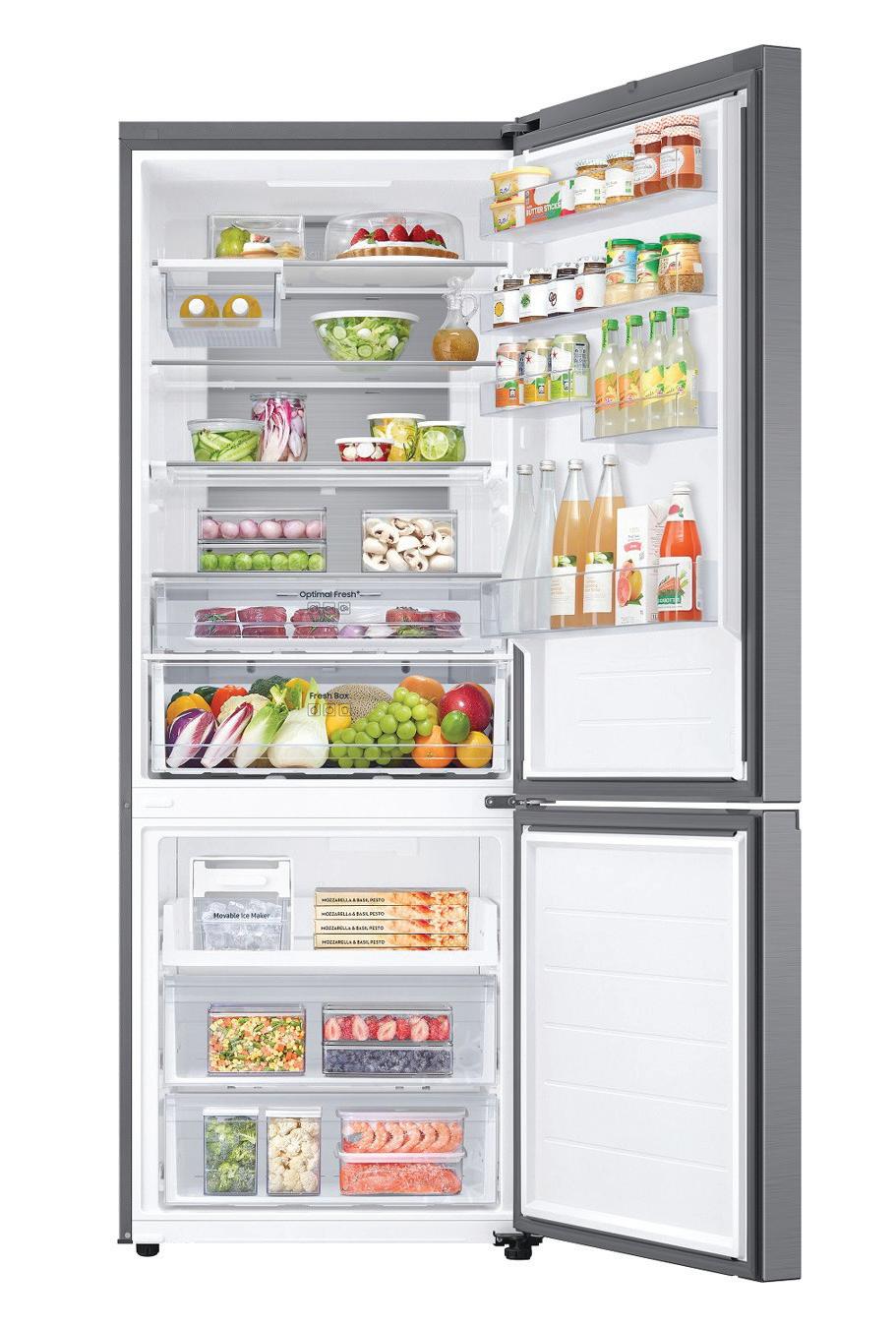 Hlad. del 276 l, zam. del 114 l, Metal Cooling hlajenje s kovino, No Frost, Optimal Fresh + prvotno svežino ohrani dvakrat dlje, Humidity Fresh + optimalna vlažnost za dolgotrajno svežino, hitro hlajenje in zam., povezljivost s SmartThings, glasnost 35 dB