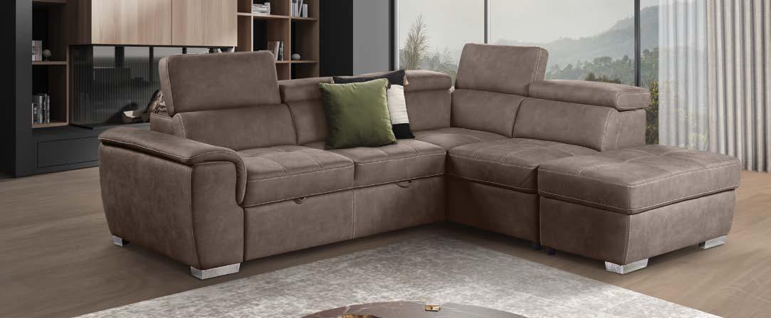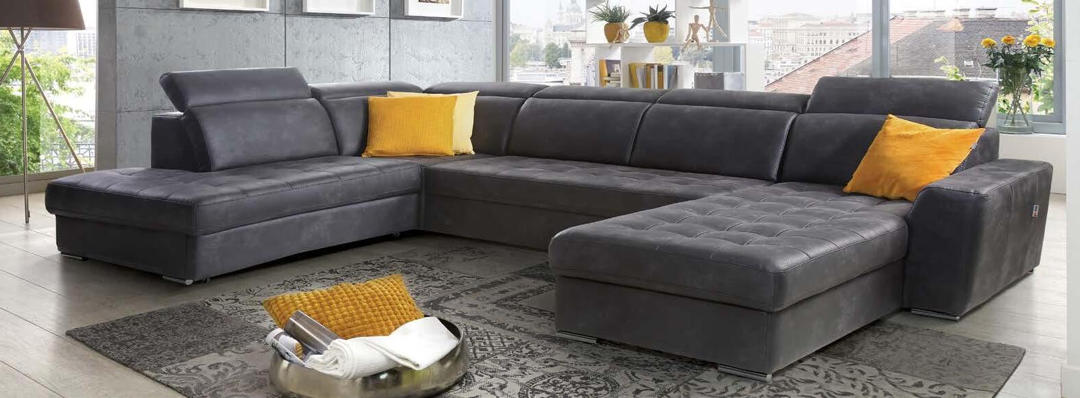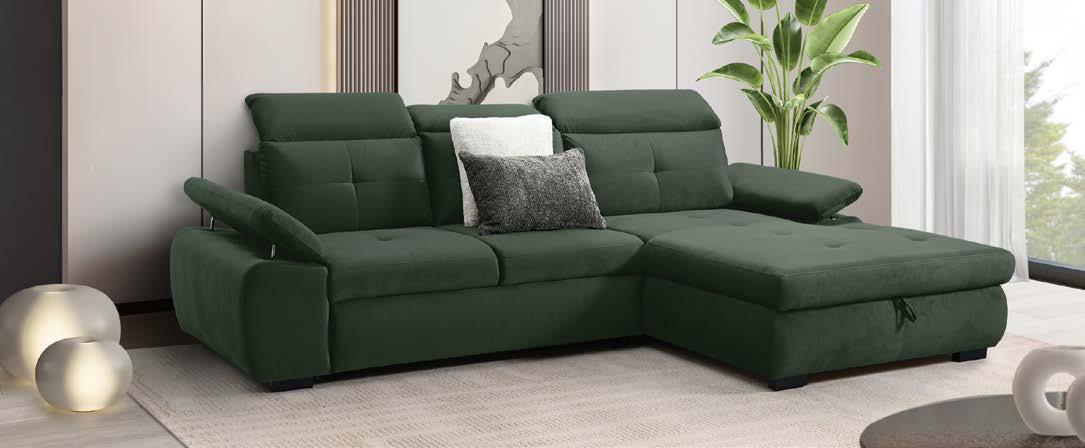 €1.590 Kotna sedežna garnitura WIND II, vzmeteno, 278x182cm, leva ali desna postavitev, ležišče, predal, 3x nastavljiv vzglavnik, 2x nastavljiv rokonaslon, blago ELEMENT temno