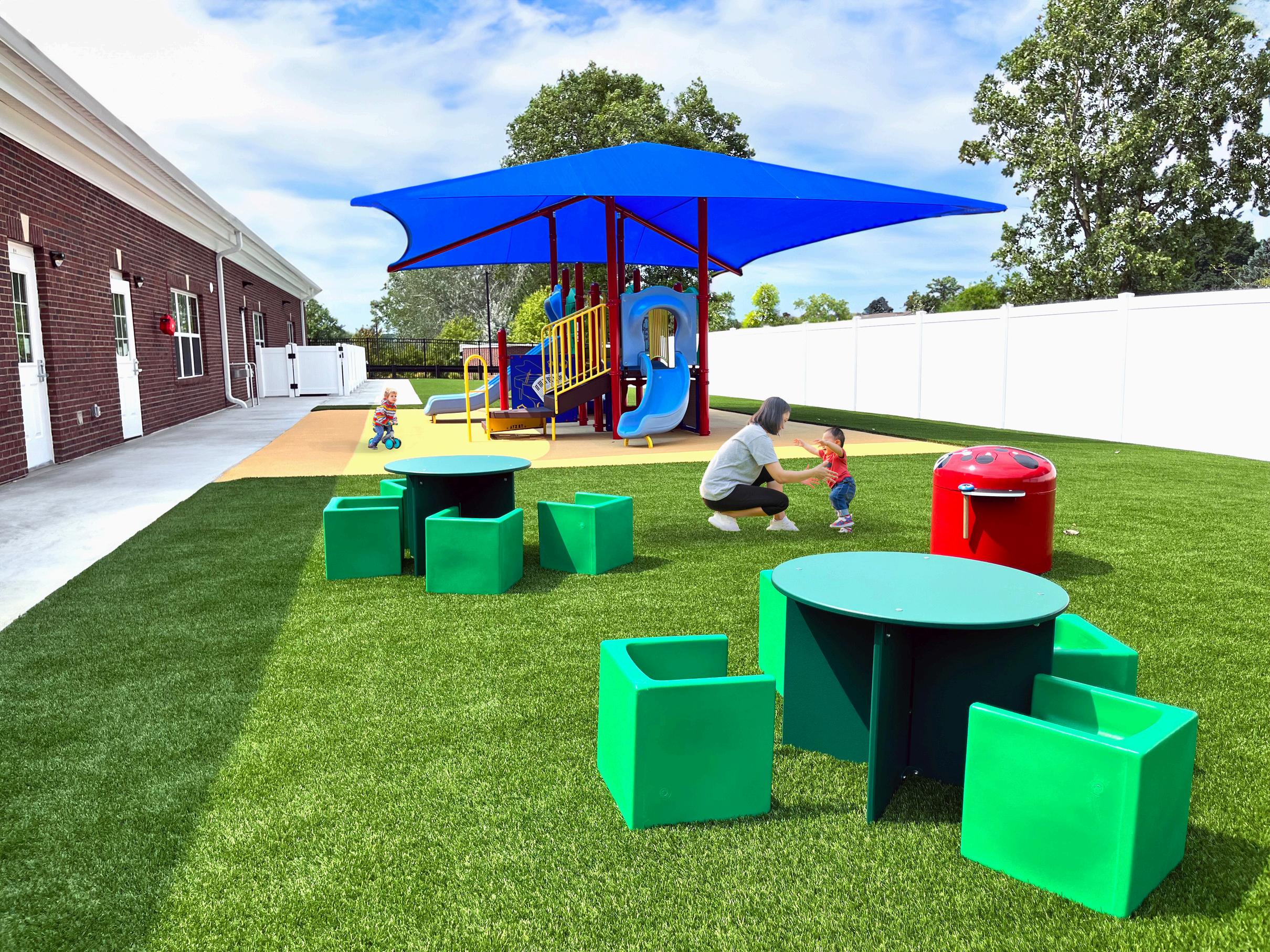 The Goddard School uses the most curre ensure children have fun while learning communication, collaboration, creativity thinking Their highly trained teachers ge encourage children every step of the wa develop, and achieve important mileston By maintaining The Goddard School’s hi standards, the welcoming school house community The brick and stone compos timeless building that will benefit the sch come