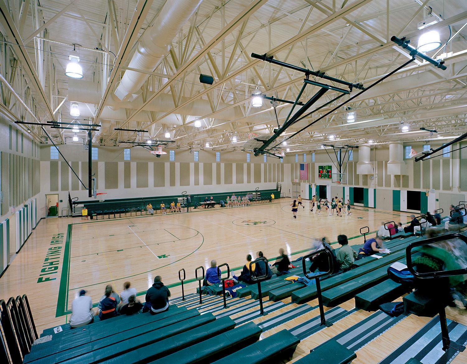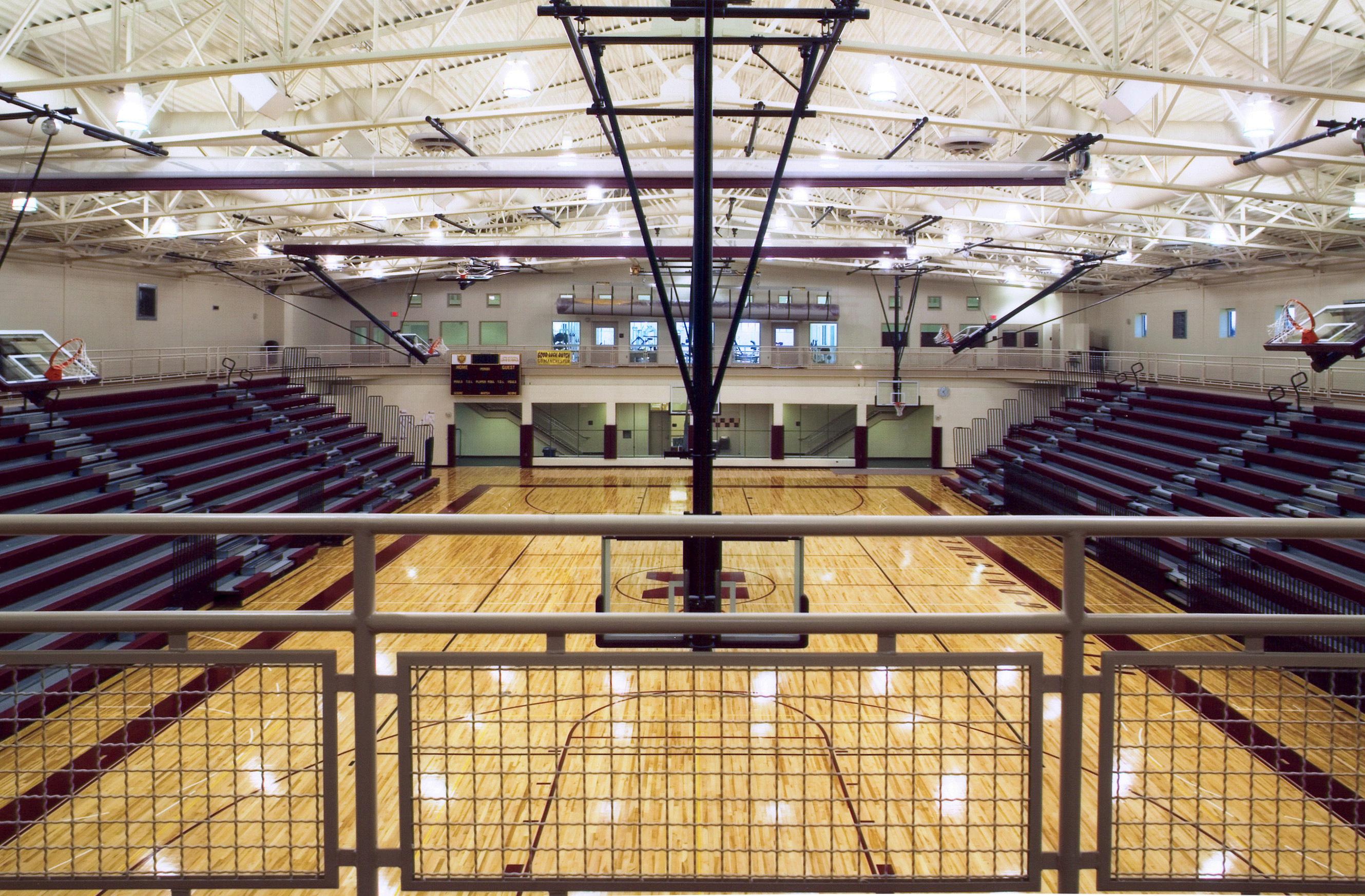 The existing lower-level weight room was repurposed for a new band room, requiring a new addition to relocate the weightlifting space.