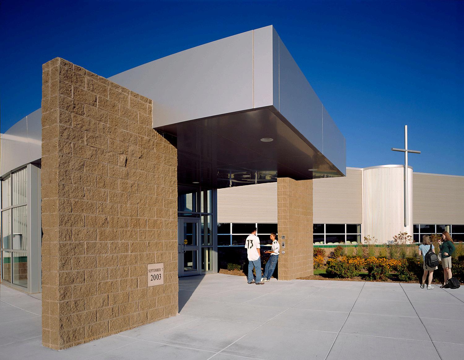 Hobbs+BlackArchitects,inassociationwithTMP Associatesasdesignconsultant,wascontracted inthespringof1998toplananddesignanew highschoolonaheavilywooded,hillysitein AnnArborTownship.Phaseoneincluded classrooms,thegymnasium,thechapel, administrativeoffices,andamediacenter It consistsof92,000squarefeetwithacapacityof 510students.Phasetwoaddedadditional classrooms,anauxiliarygym,andanauditorium consistingofapproximately30,000squarefeet, bringingthetotalcapacityoftheschoolto600 students