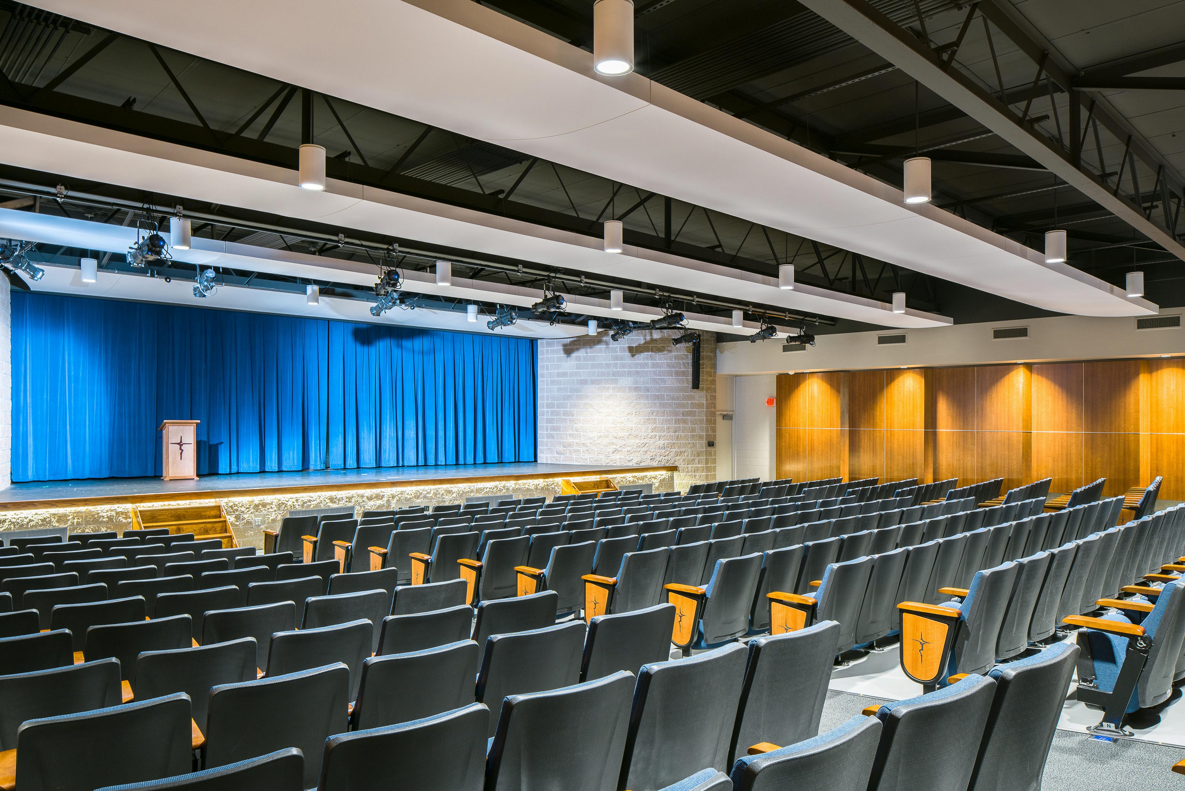 LCHS sought to modernize its outdated auditorium and create dedicated spaces for band and choir programs with improved functionality and acoustics Hobbs+Black led programming, design charrettes, and acoustic coordination to deliver spaces that meet curricular needs while enhancing aesthetics and sound quality The adjacent lobby was also refreshed, resulting in a cohesive and fully updated performing arts facility