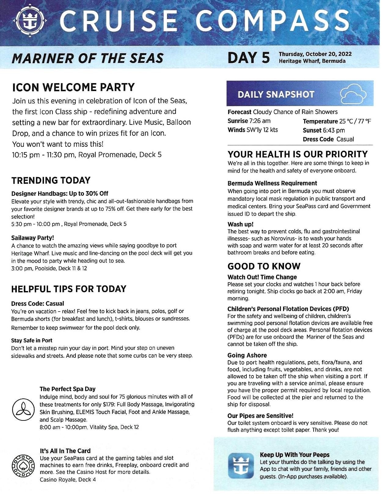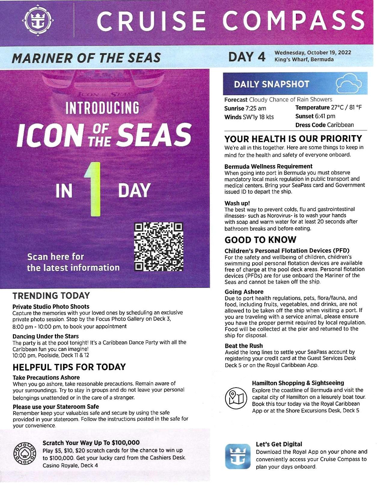 Mariner of the Seas 8-night Bermuda and Perfect Day Cruise Compass - October 16, 2022
