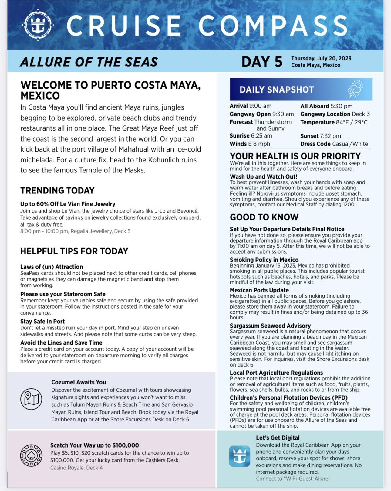 Allure of the Seas 7-night Western Caribbean Cruise Compass - July 16, 2023