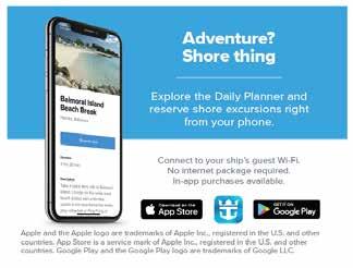 Want to book a shore excursion right now? You can research, reserve a tour, and receive instant confirmation right on your phone. Book today using the app or by visiting the Shore Excursions Deck 6.