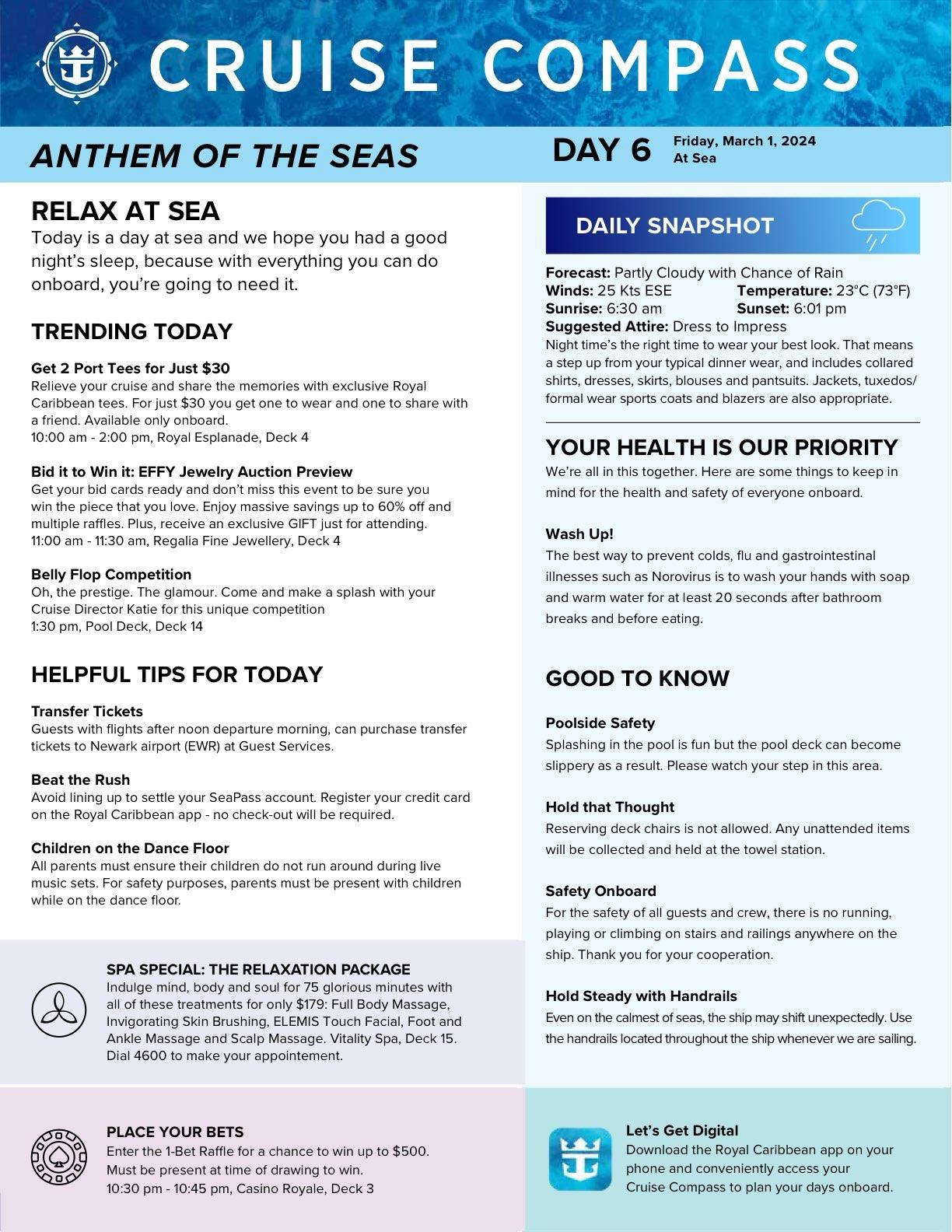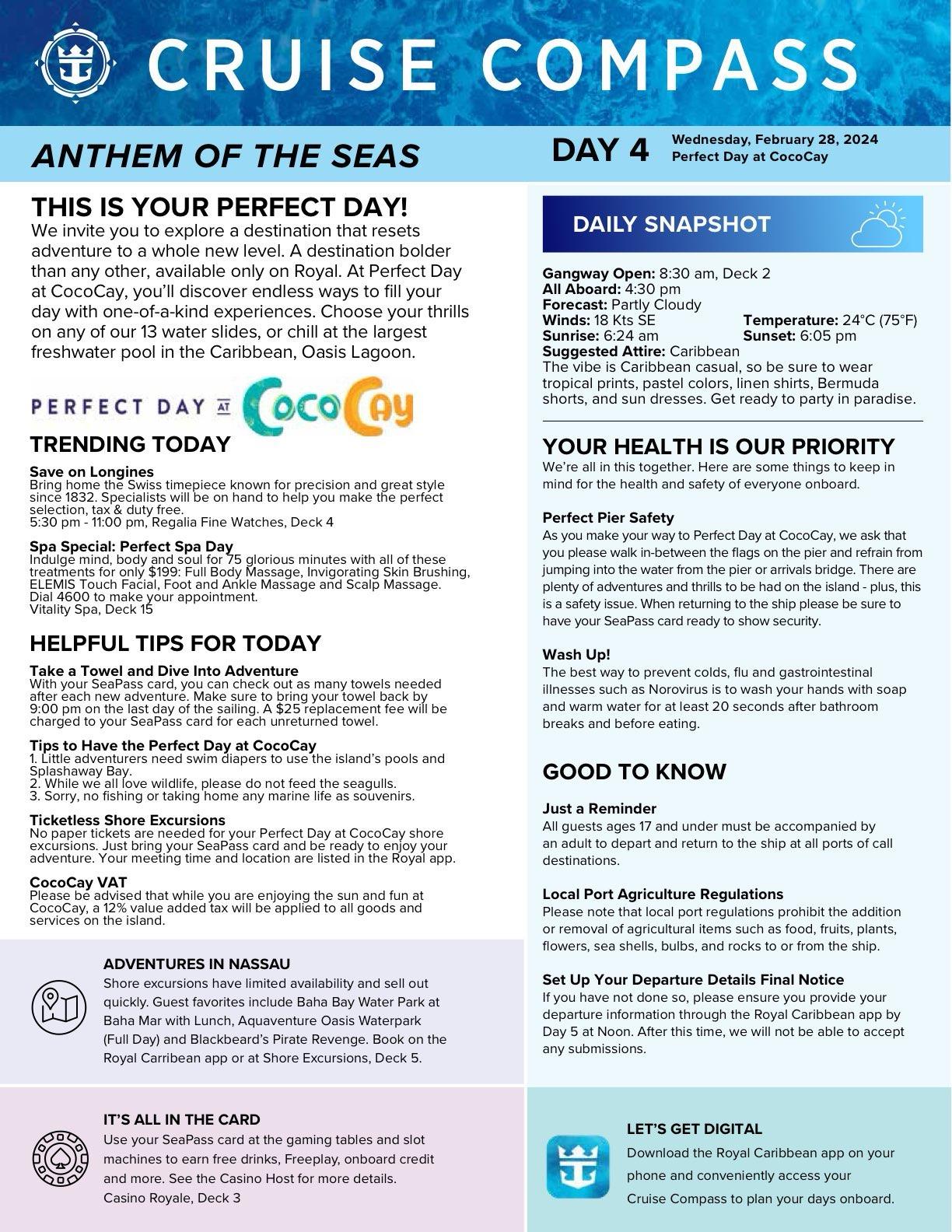Anthem of the Seas 7-night Bahamas and Perfect Day Cruise Compass - February 25, 2024