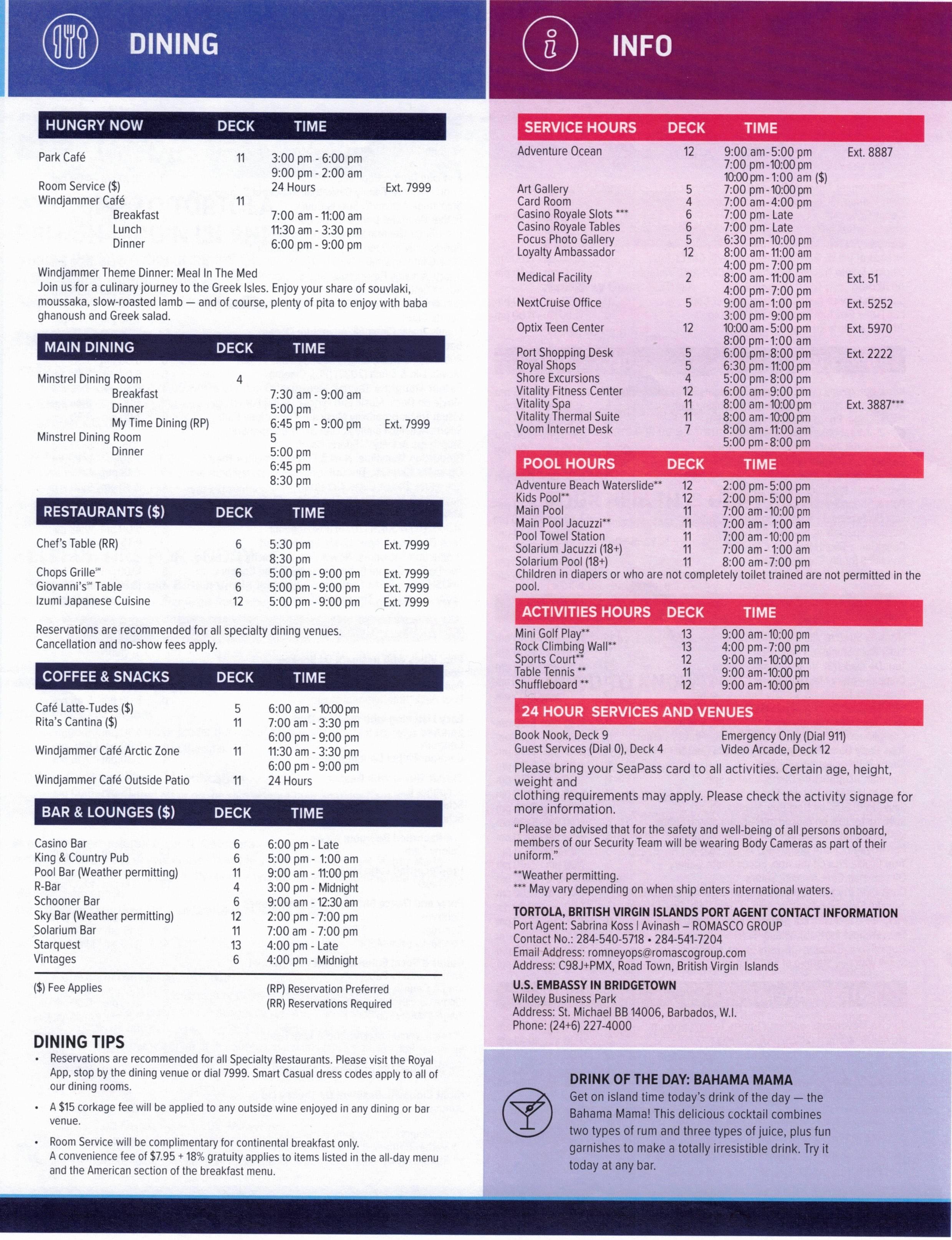 Use your seapass card at the gaming tables and slot machines to earn free drinks, free play, onboard credit or more. See Casino Host for more details. Casino Royale, Deck 6, 9:30 pm