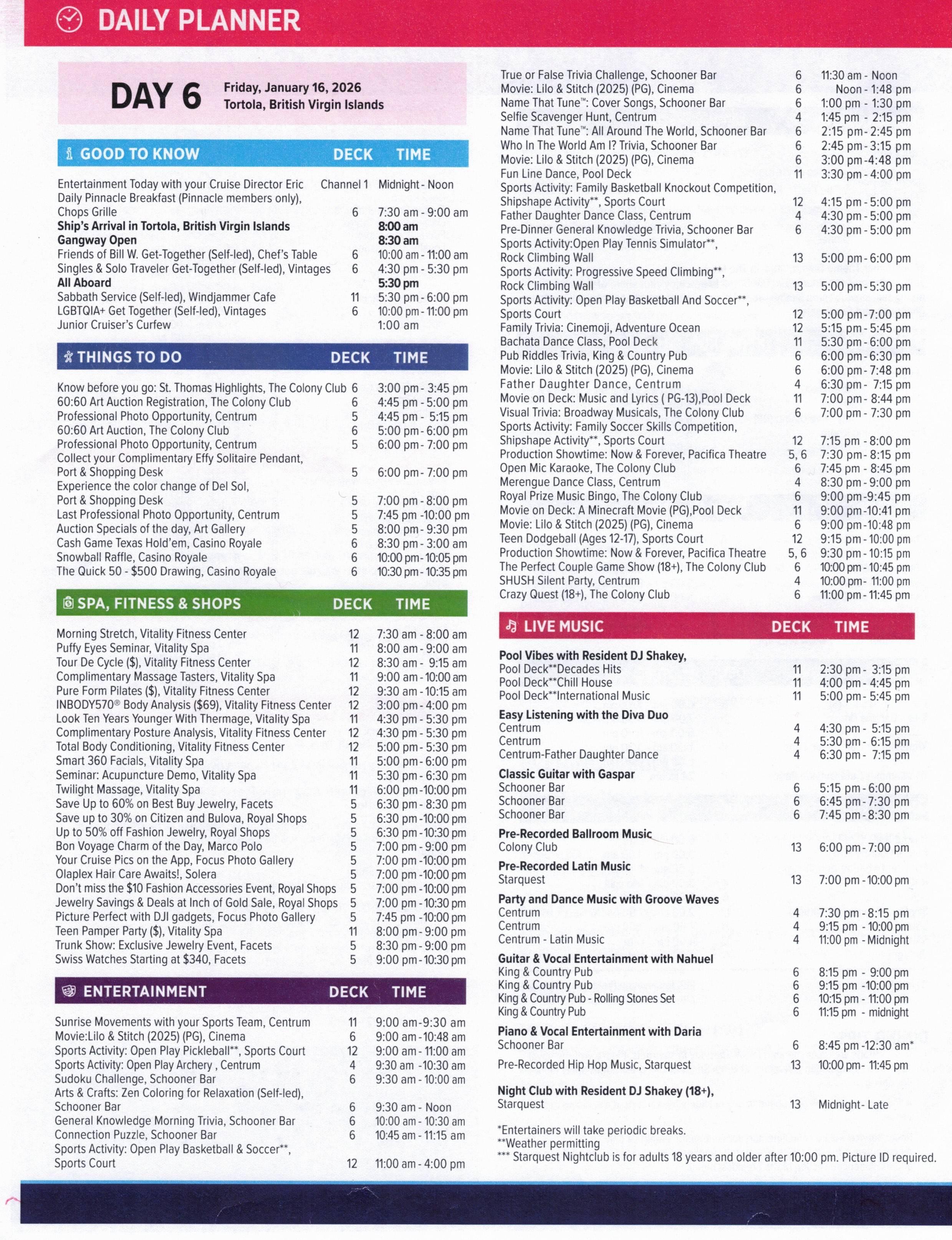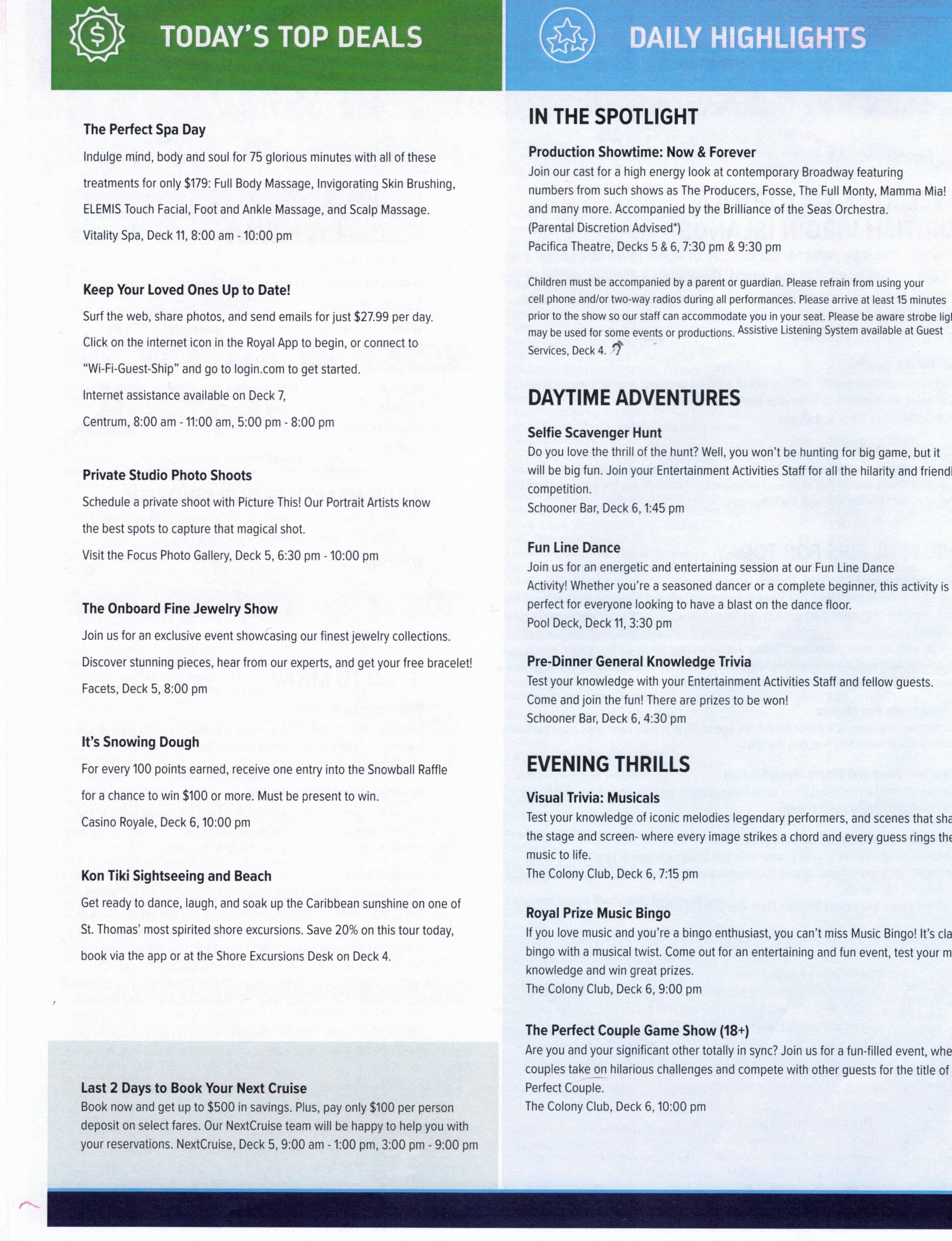 Don’t miss the Welcome Aboard Trivia. Join your Entertainment Activities Staff as they put you to test.