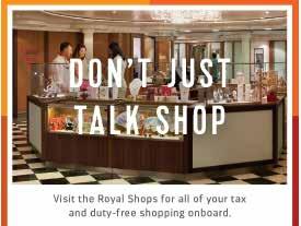 Visit the Port & Shopping desk and collect extra chances to win big at the Port & Shopping Talk. Available this cruise only, enter for a chance to win a $1000 onboard shopping spree, diamond jewelry and more. Be in it to win it!