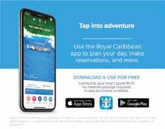 Mandatory Safety Brieng, check-in at your assigned Assembly Station 4/5/6 10:30 am - 3:30 pm Welcome Aboard Address with your Cruise Director RickyCh 1 10:30 am - Midnight Show Reservation Assistance for the Royal Caribbean App (Bring your smart device), Blaze4 11:00 am - 3:30 pm Box Ofce - Entertainment Reservations, Book via the Royal Caribbean APP or Dial #2323 11:00 am - 6:00 pm All Aboard 3:30 pm Junior Cruiser’s Curfew (Under 18 years) midnight NextCruise Destinations Ch 1124 hours Port & Shopping Information Ch 1324 hours
