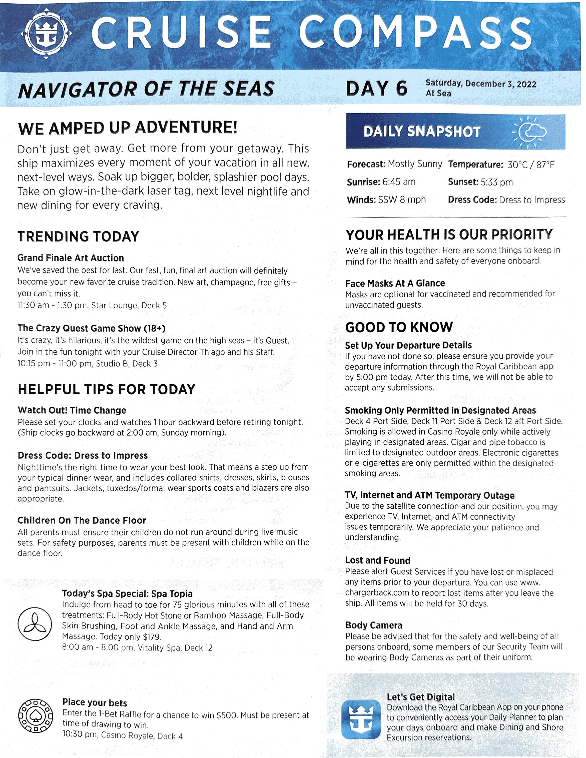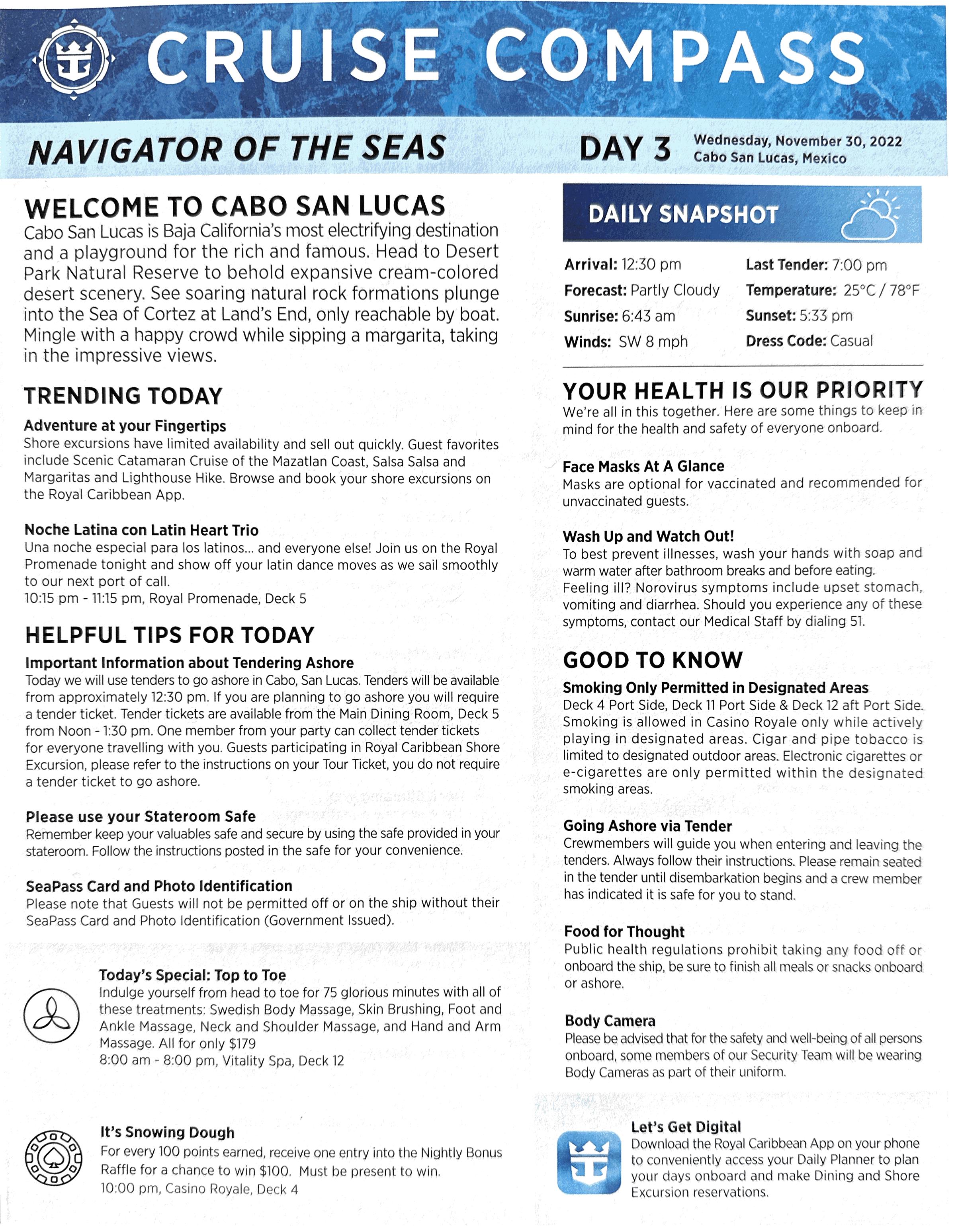 Navigator of the Seas 7-night Mexican Riviera Cruise Compass - November 28, 2022
