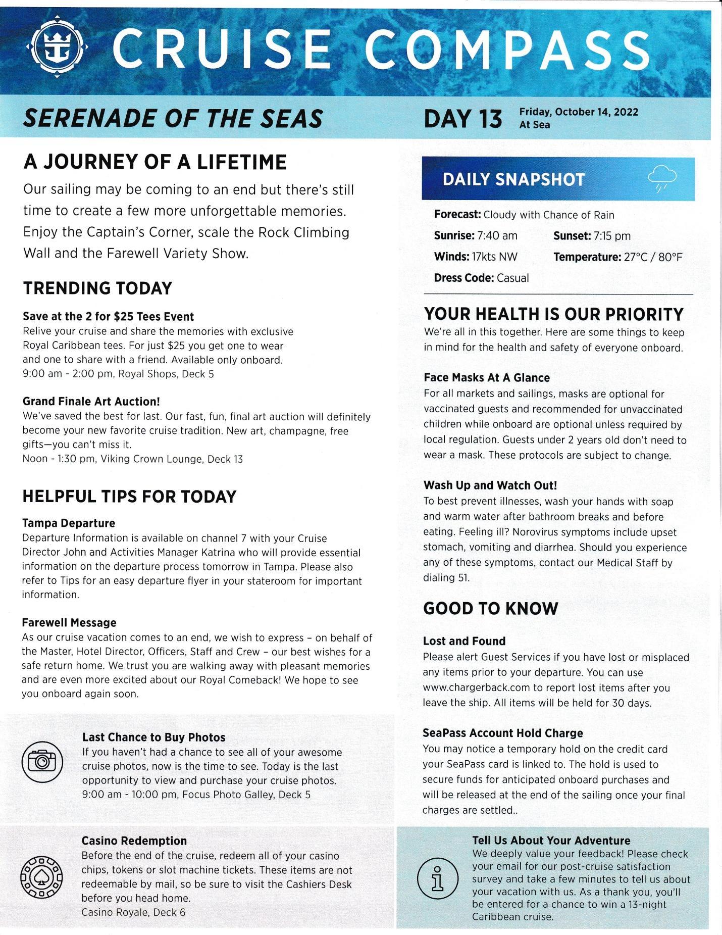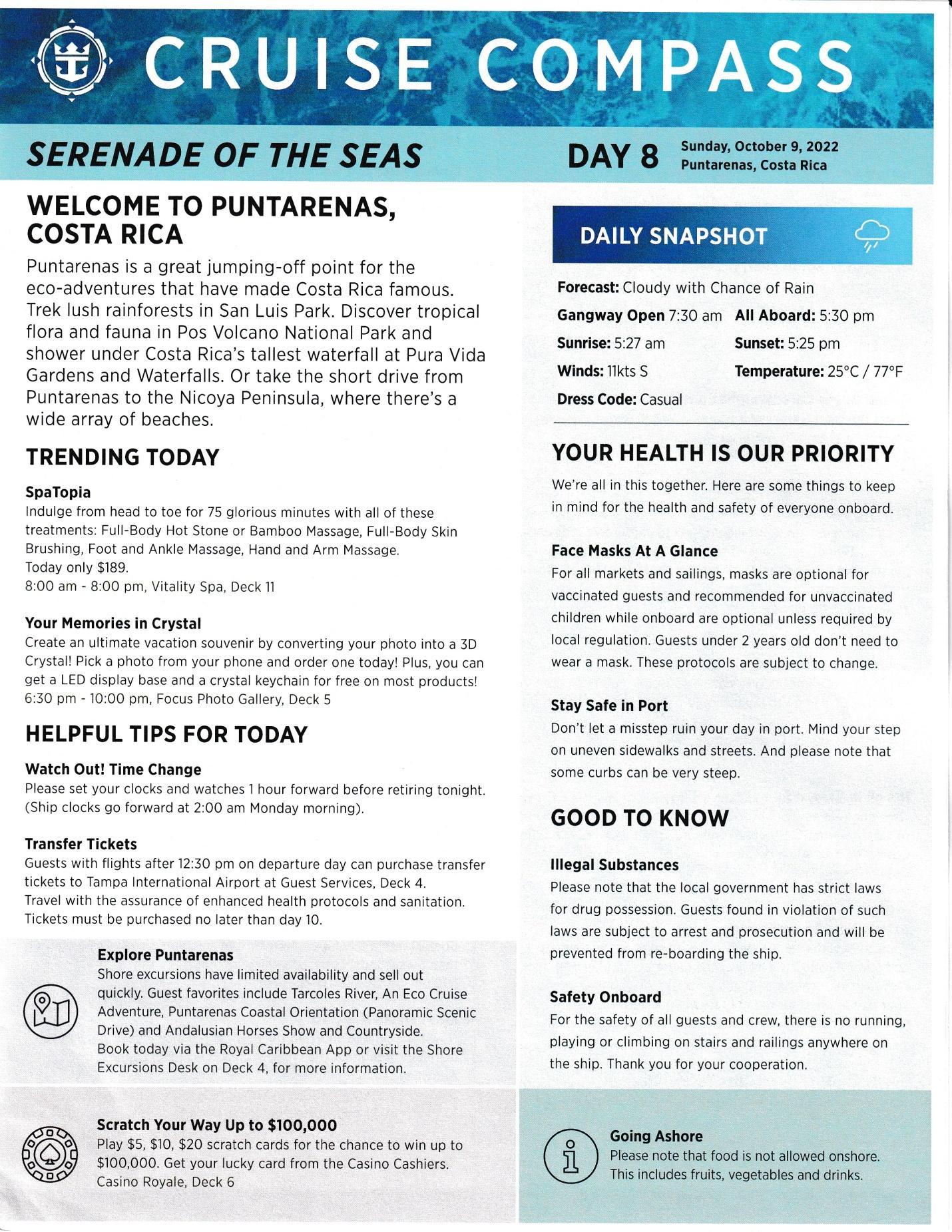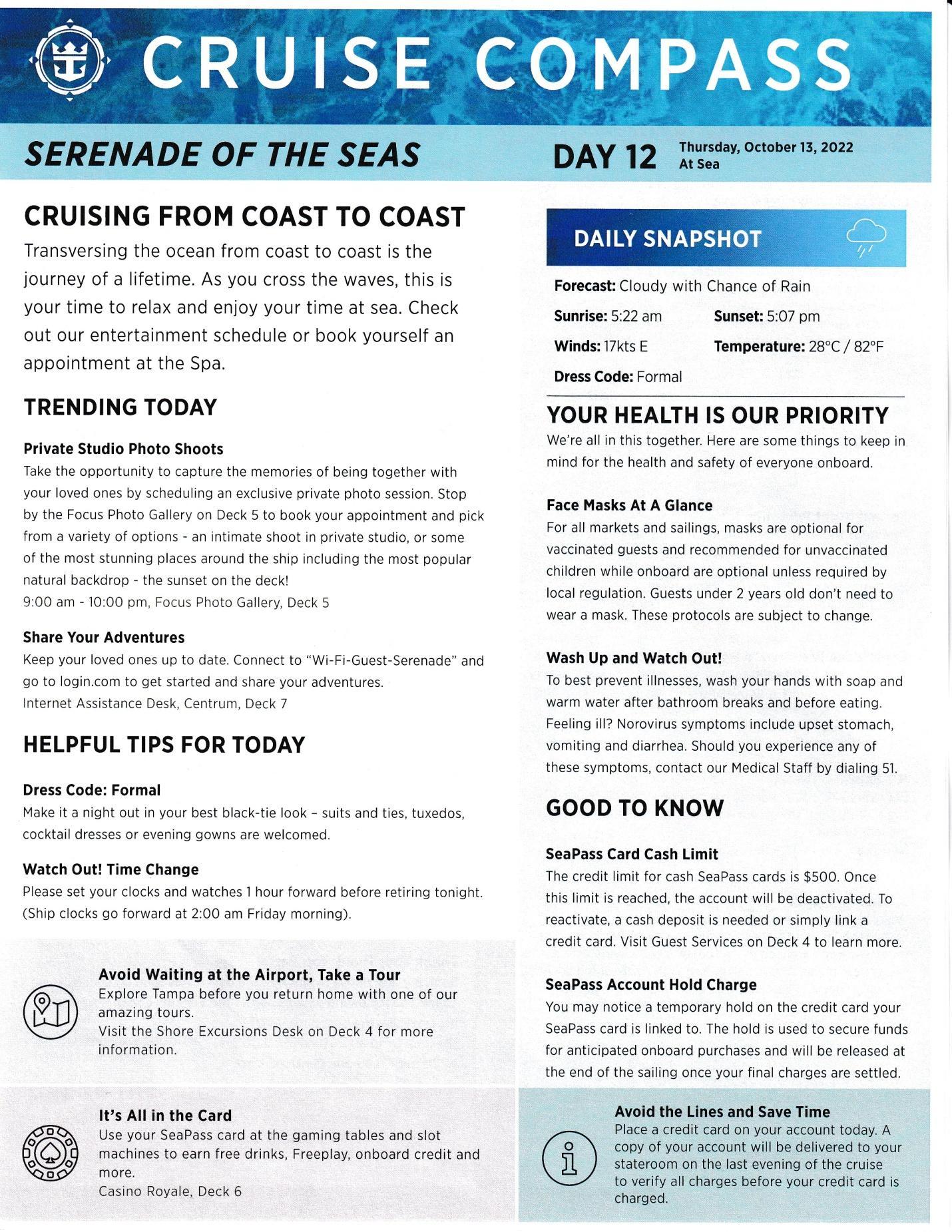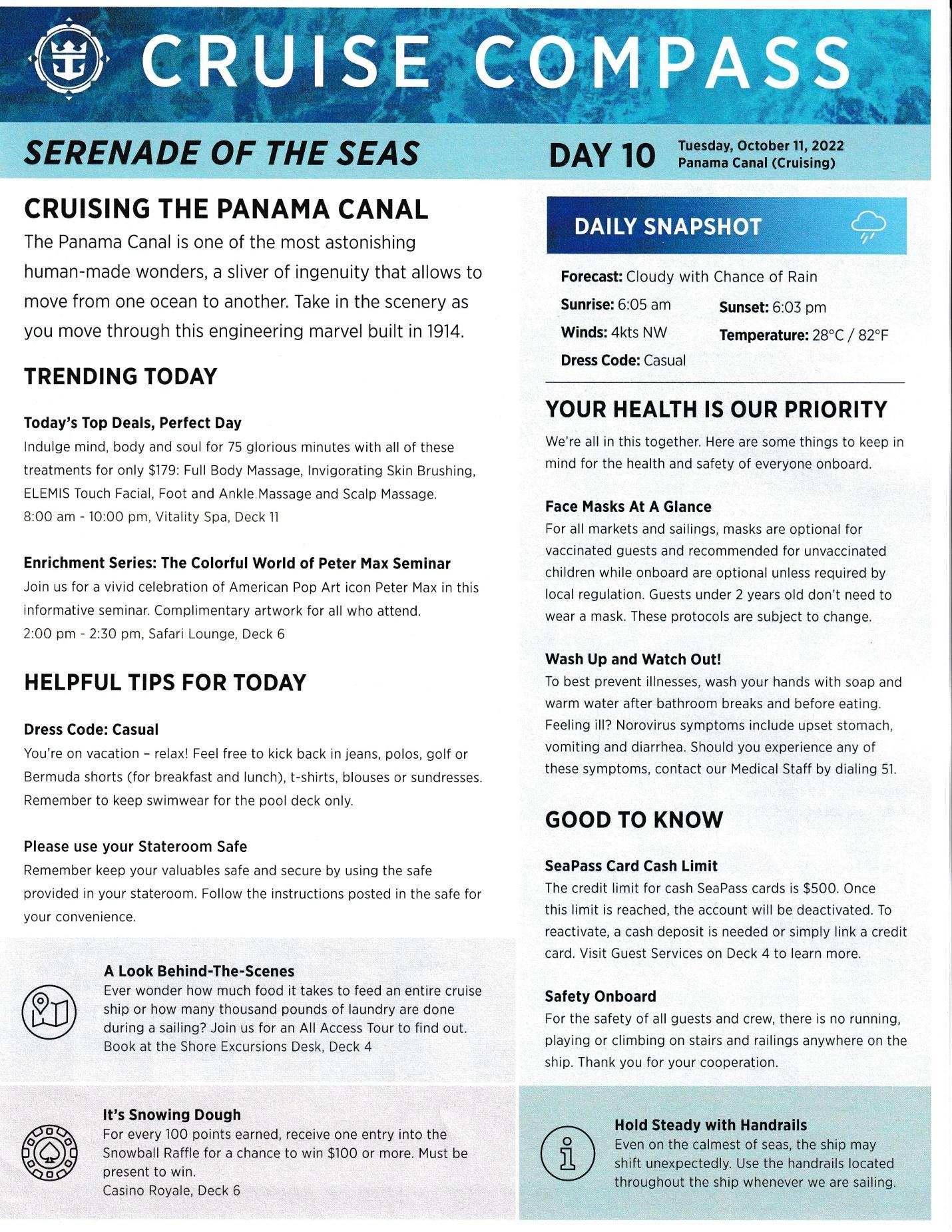 Serenade of the Seas 13-night Panama Canal Eastbound Cruise Compass - October 2, 2022