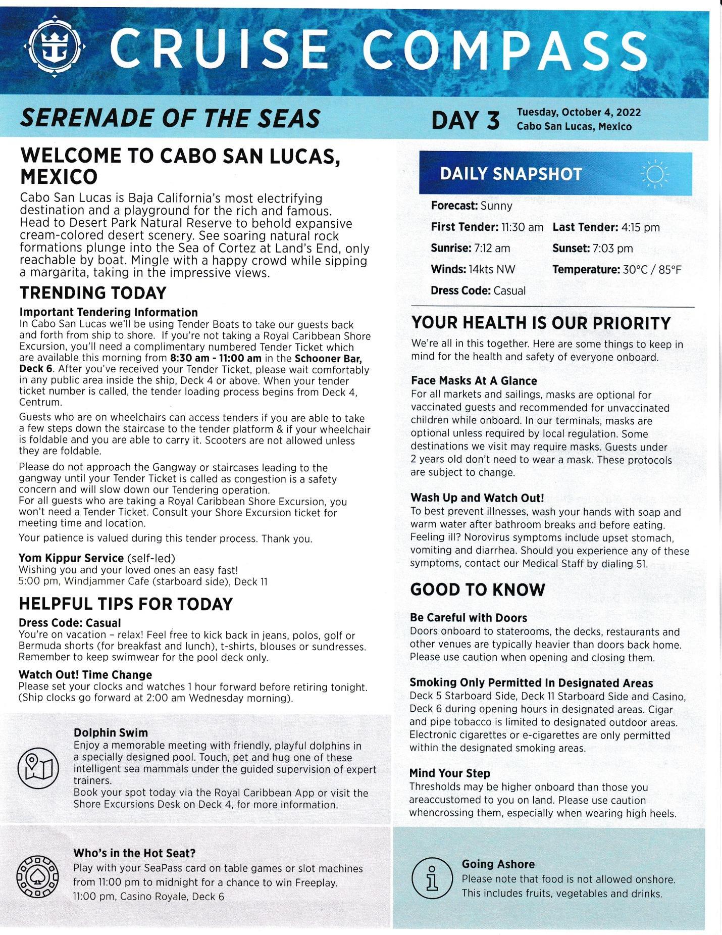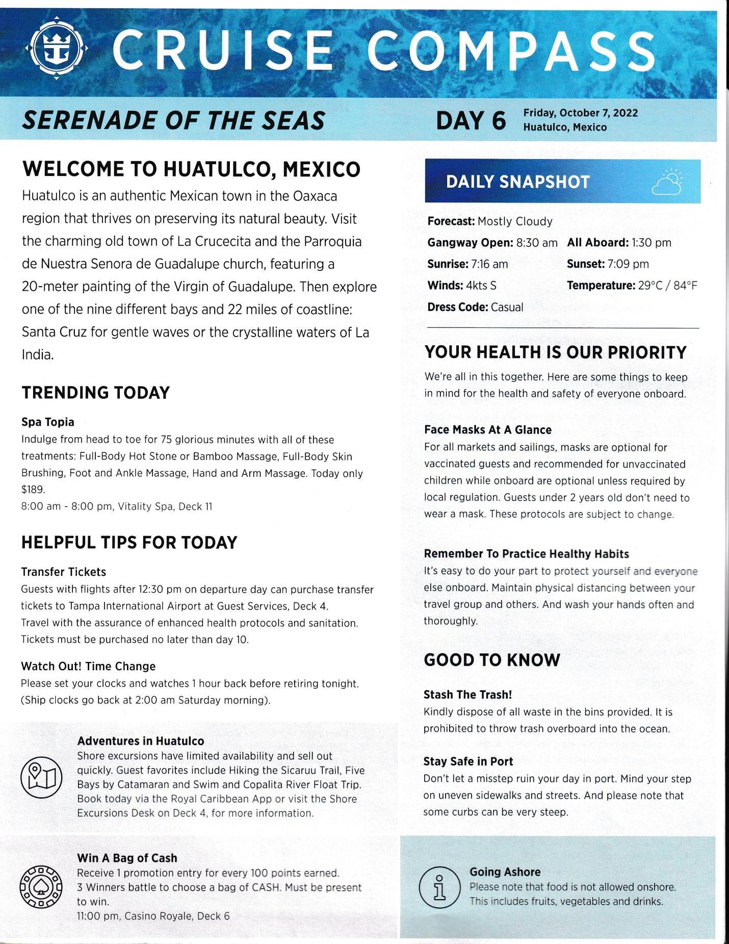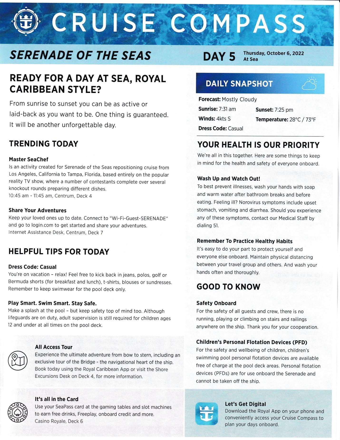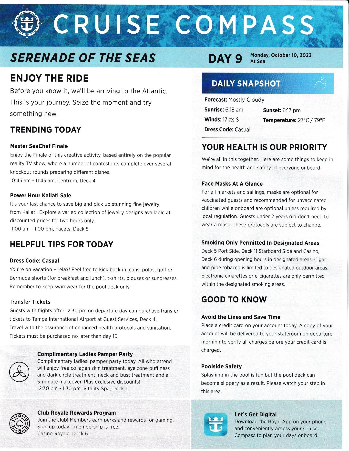Serenade of the Seas 13-night Panama Canal Eastbound Cruise Compass - October 2, 2022