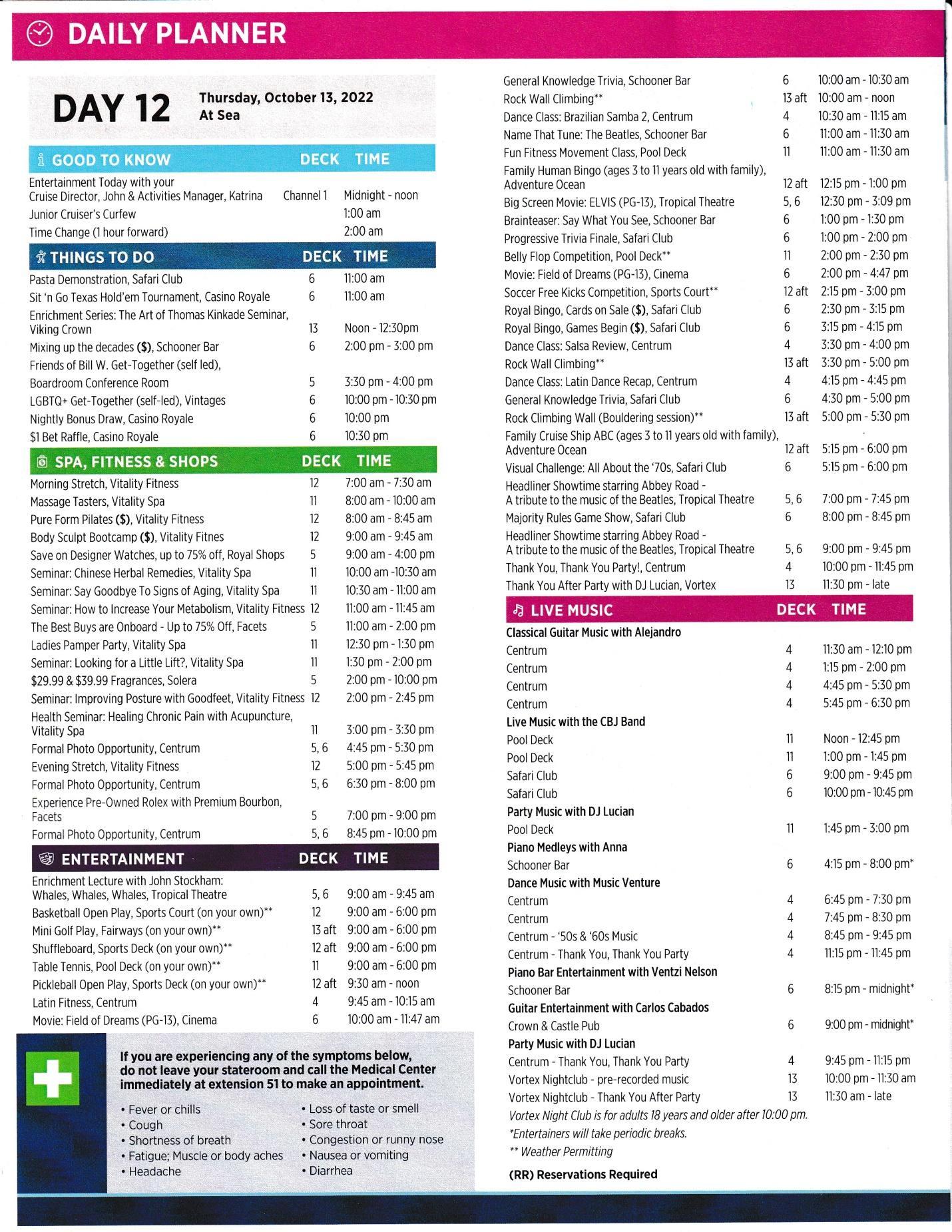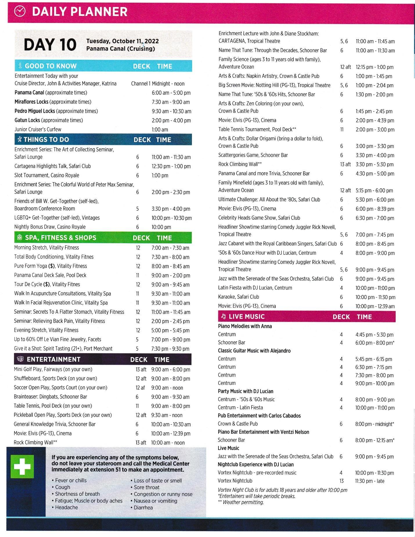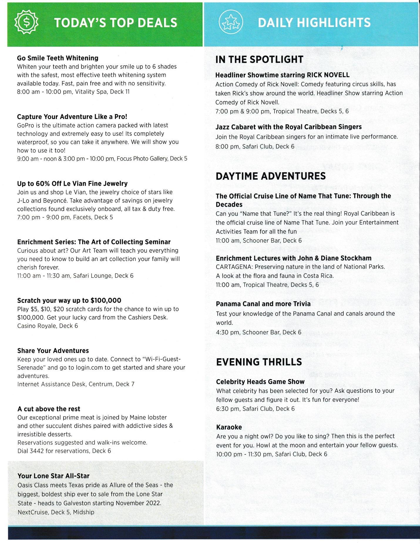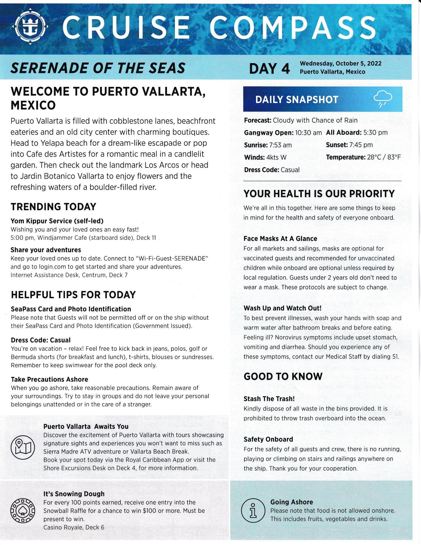 Serenade of the Seas 13-night Panama Canal Eastbound Cruise Compass - October 2, 2022