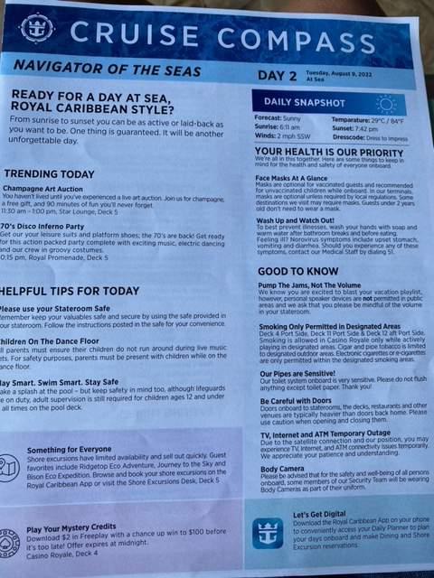 Navigator of the Seas 4-night Catalina & Ensenada Cruise Compass - August 8, 2022