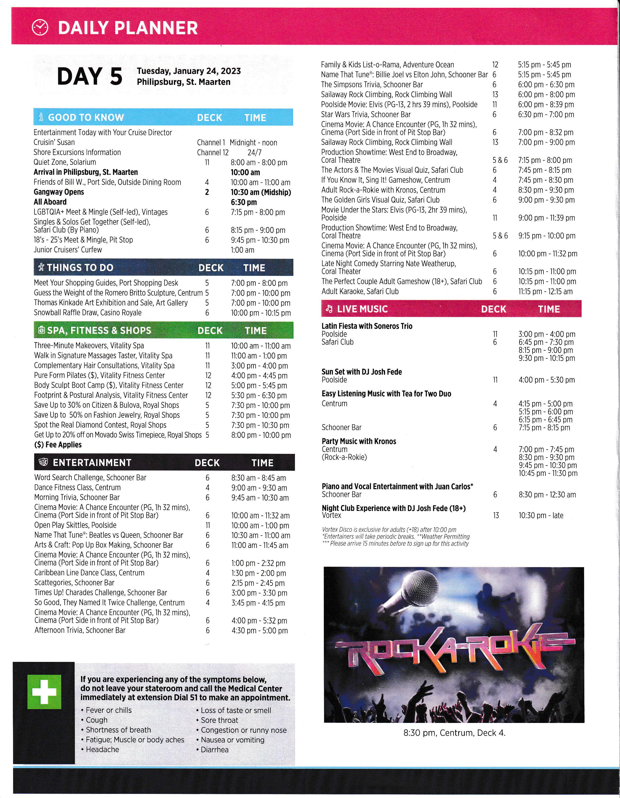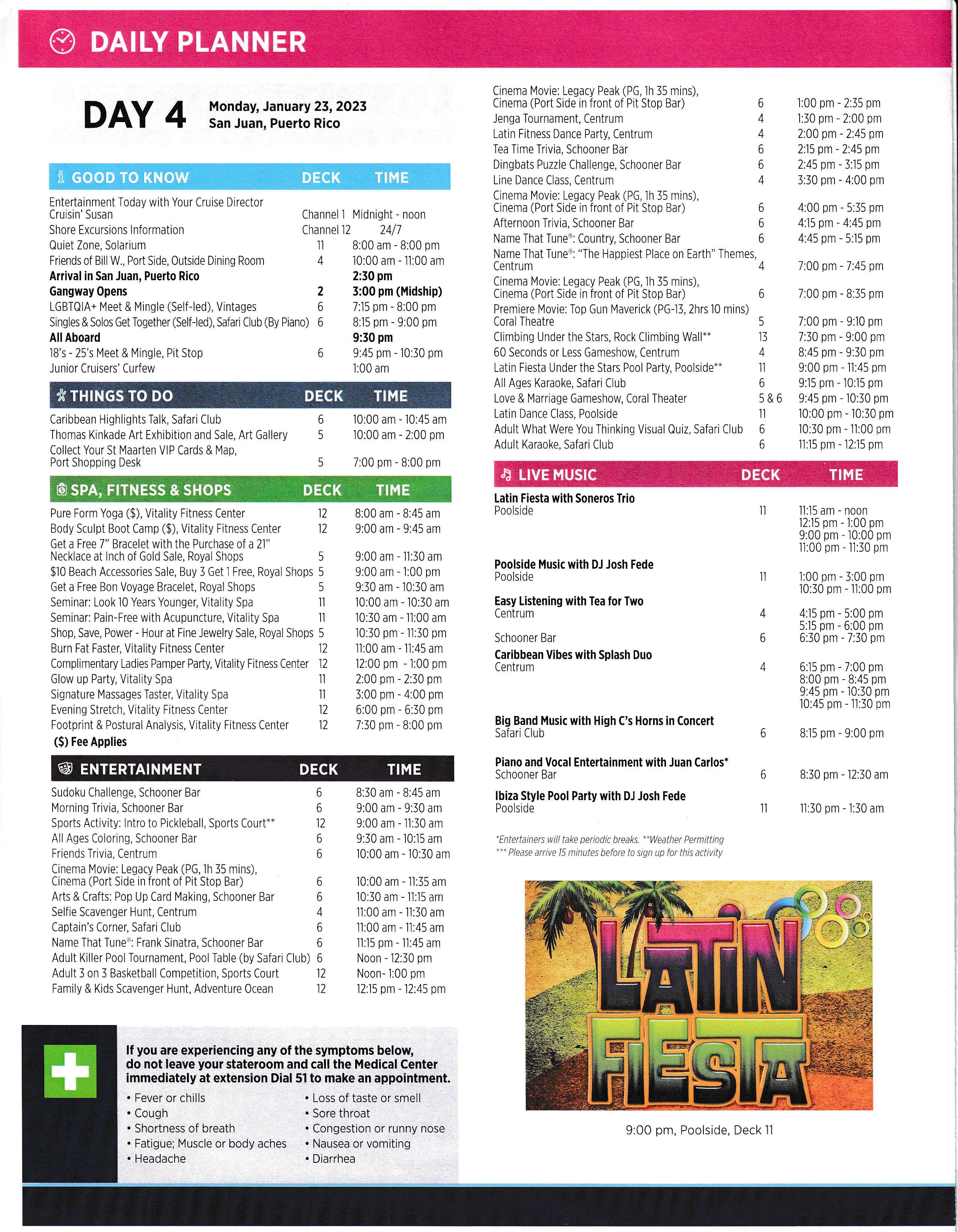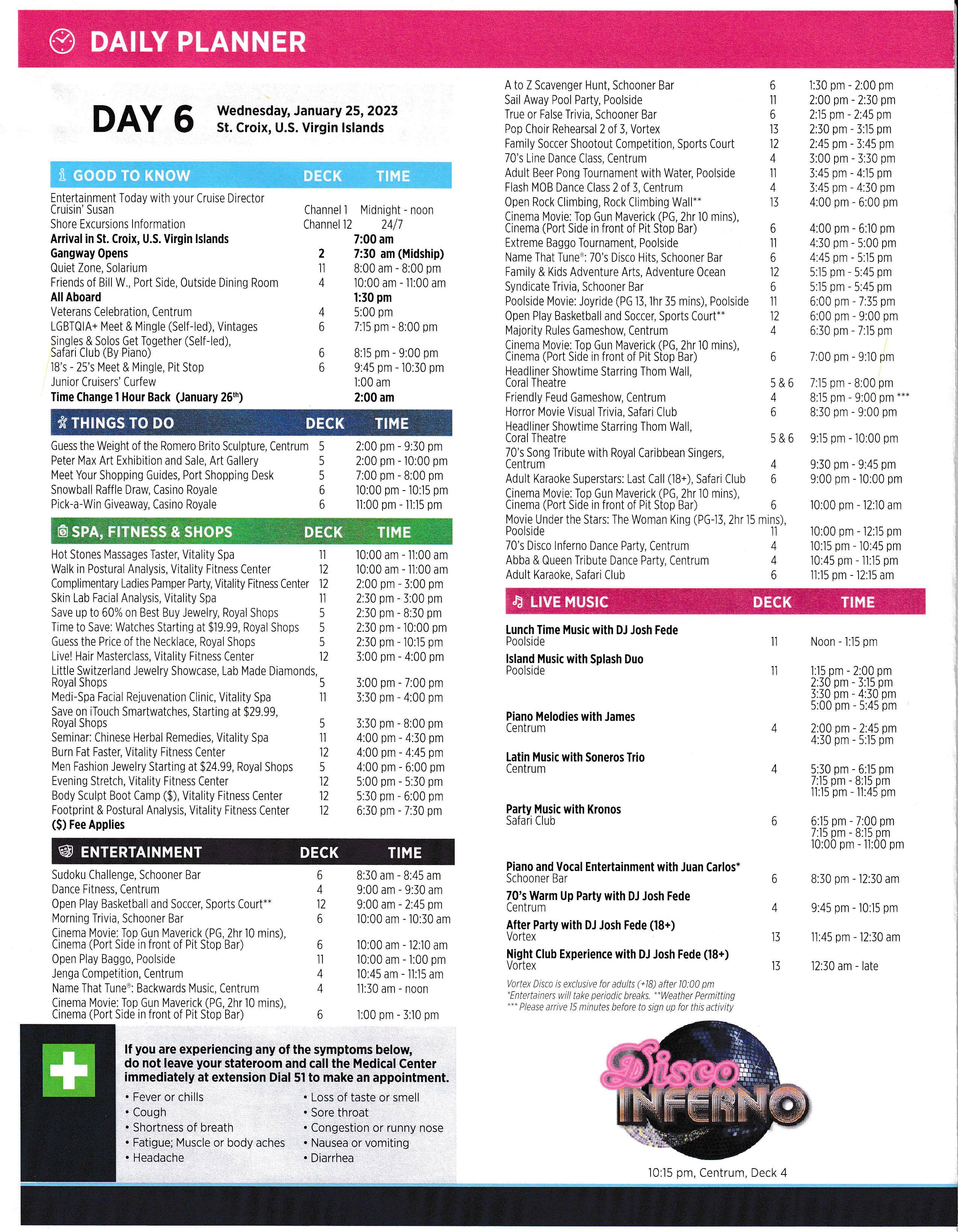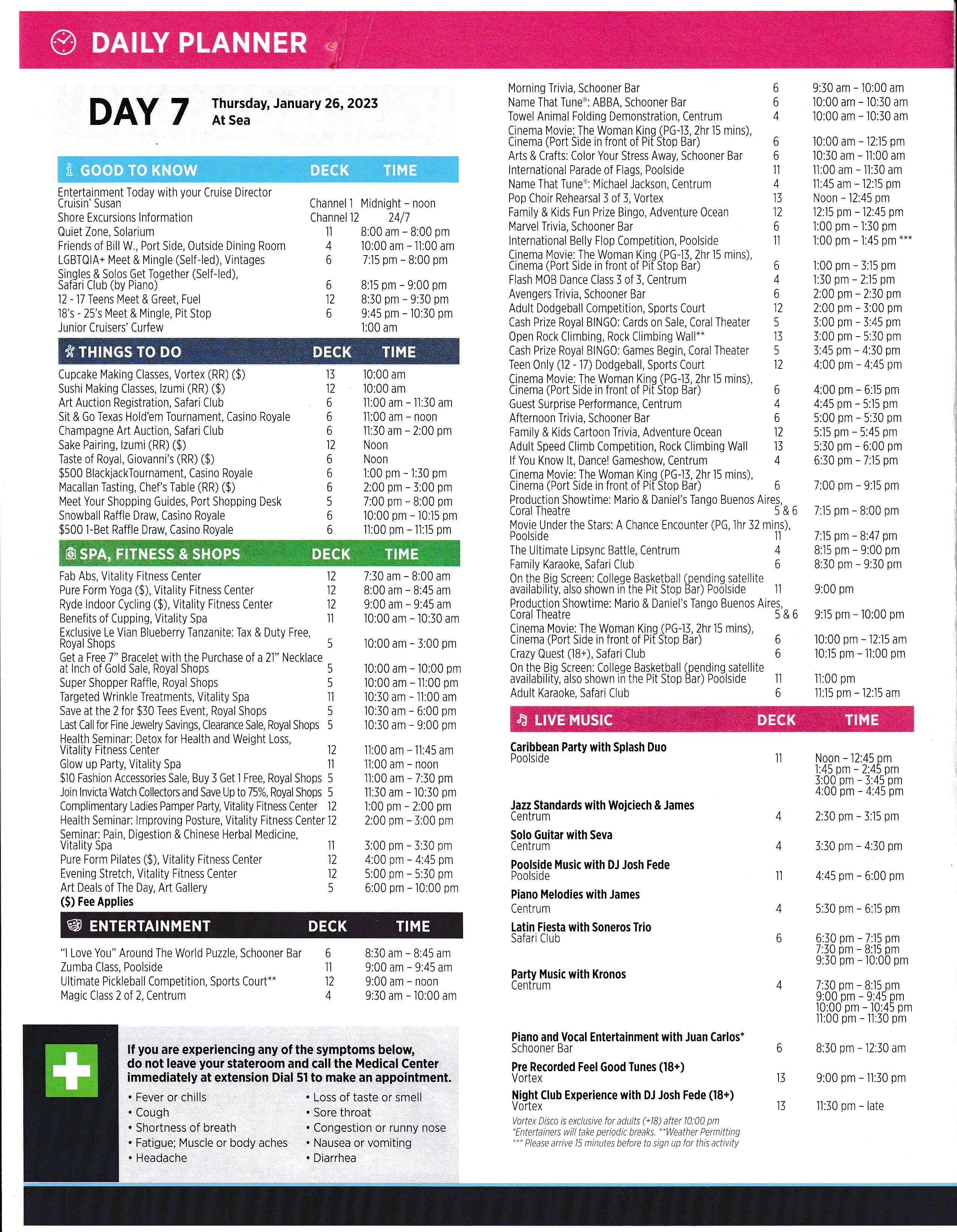 4 B:30 pm - 10:15 pm l0:30 am - 4:00 pm' 1,l.30 pm - noon 2:00 pm - 2:30 pm 4:15 pm - 5:00 pm 5:15 pm - 6:00 pm 7:15 pm - B:00 pm 9:00 pm - 10:00 pm 6:15 pm - 7:00 prn 7:15 pm - B:00 pm 10:30 pm - 1l:30 pm B:00 pm - B:45 pm 9:00 pm - 9:45 pm l0:00 pm - 10:45 pm ll:00 pm - ll:45 pm l0:30 pm - 11.30 pm 1:00 pm - 2:00 pm 2:30 pm - 3:30 pm 3:45 am - 4:15 pm t1 1l 2:00 pm - 3:00 pm 3:00 pm - 3:30 pm 3:45 pm - 4:30 pm 4 45 prn - 5:30 pm 3:00 pm - 4:30 pm6 I 12 t3 6 6 6 6 6 t1 6 6 12 4 4 6 4 6 below' @ ENTERTAINMENT DECK TIME Headache ng any ll 30 prn late