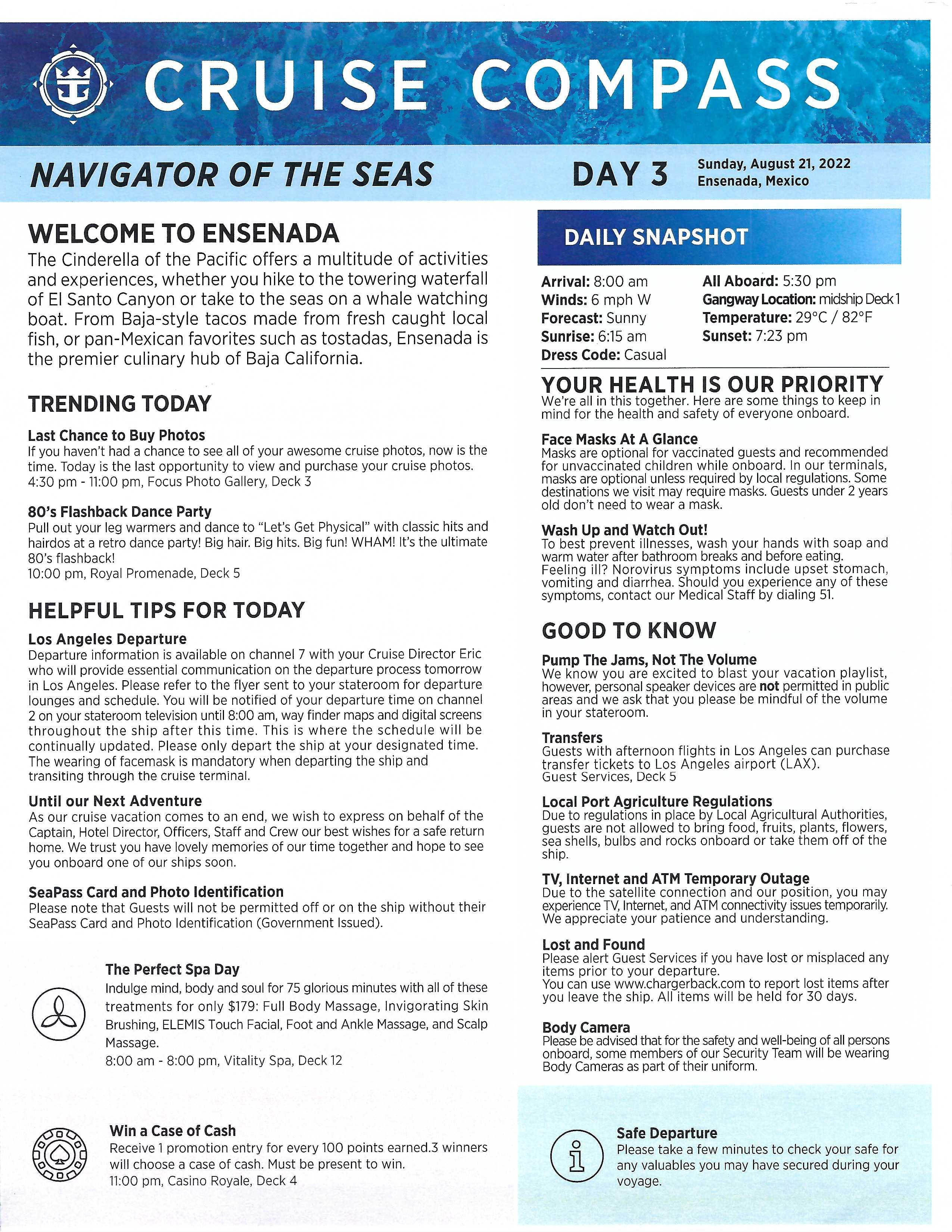 Navigator of the Seas 3-night Ensenada Cruise Compass - August 19, 2022