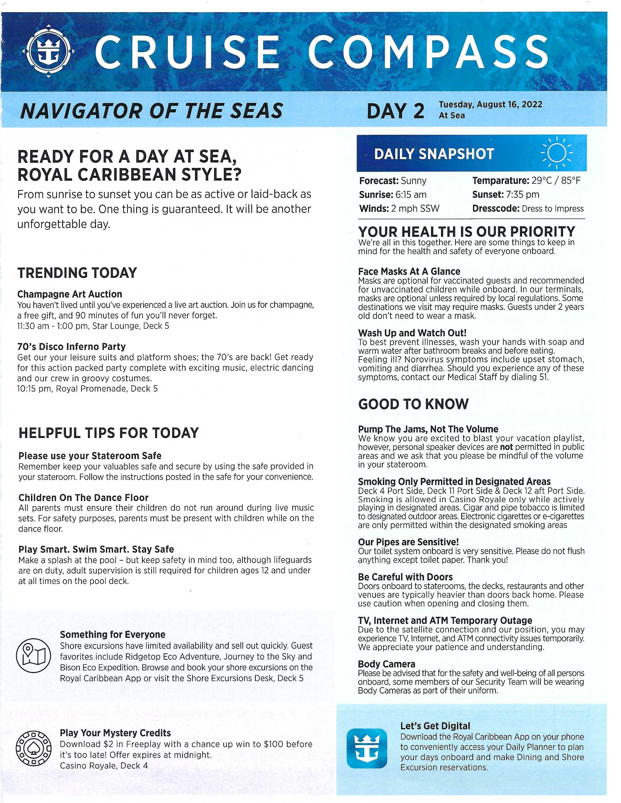 Navigator of the Seas 4-night Catalina & Ensenada Cruise Compass - August 15, 2022