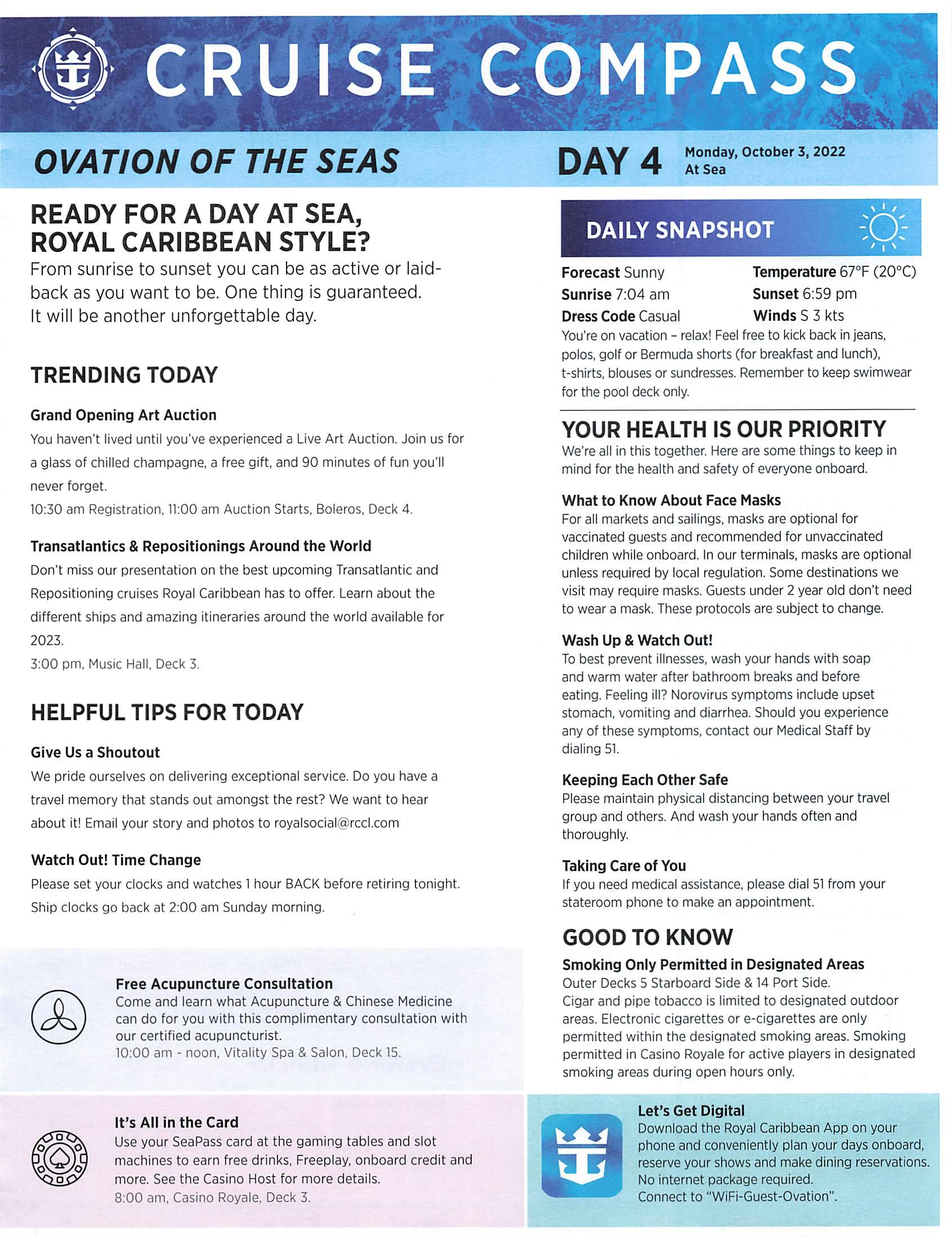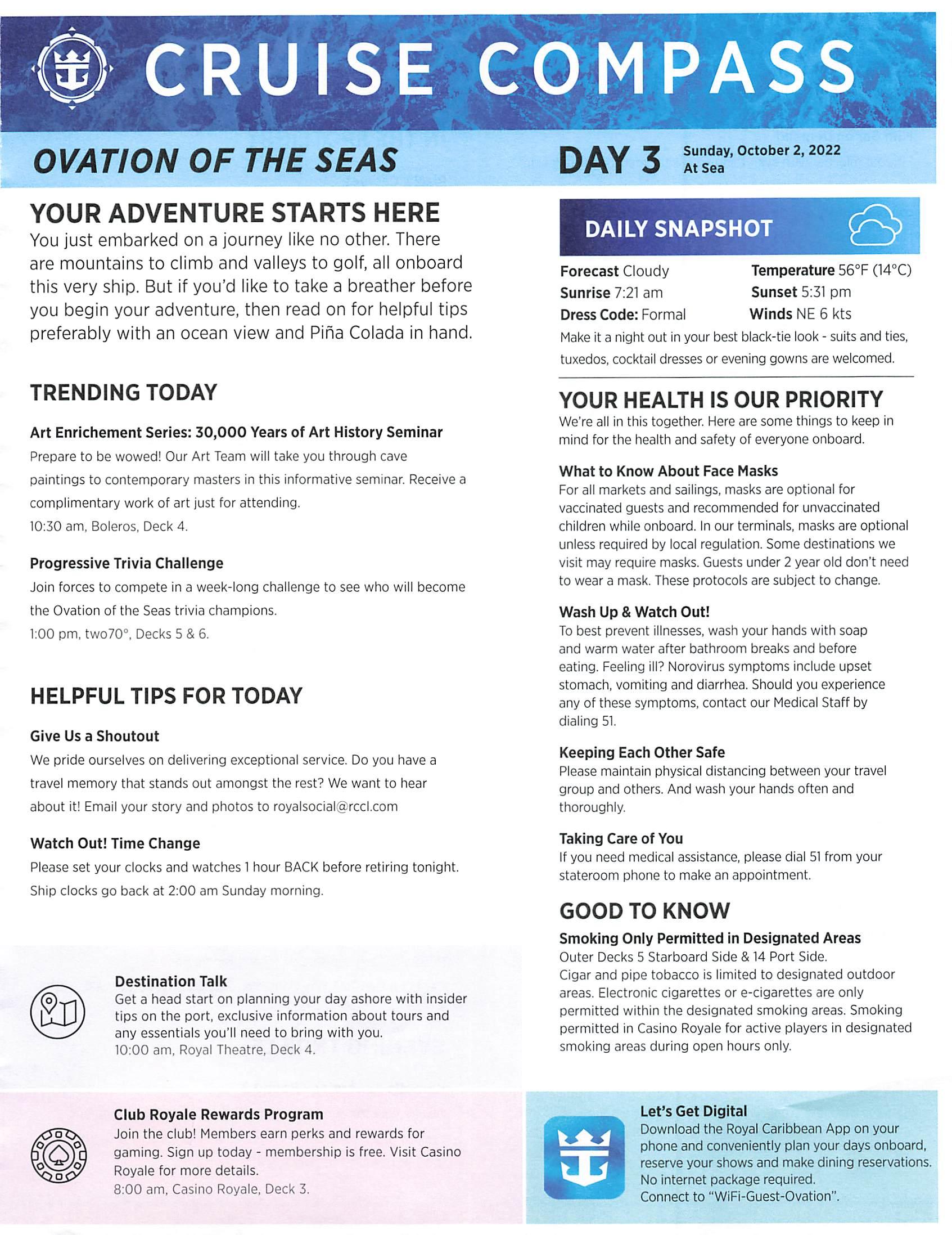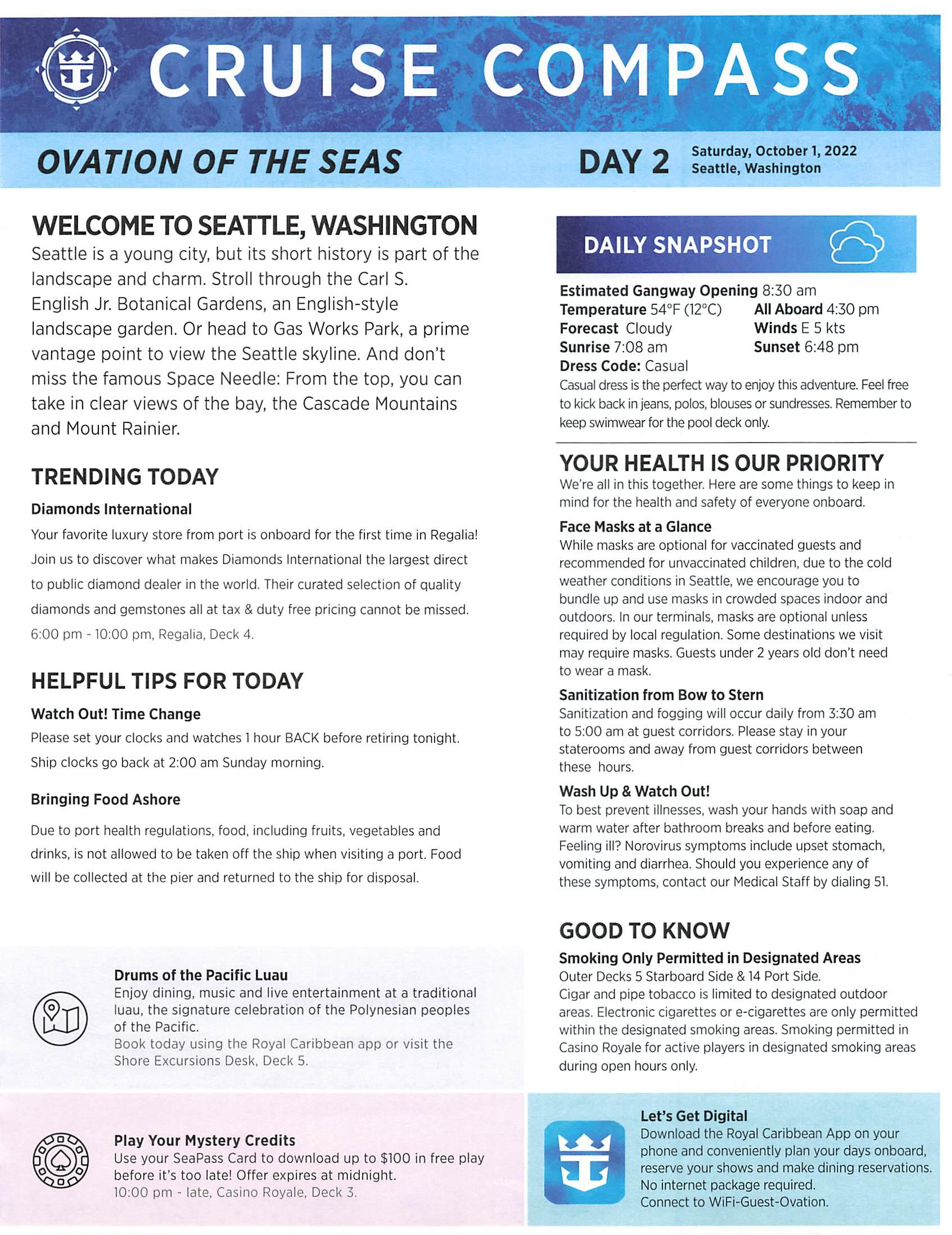 Ovation of the Seas 9-night Hawaii Cruise Compass - September 30, 2022