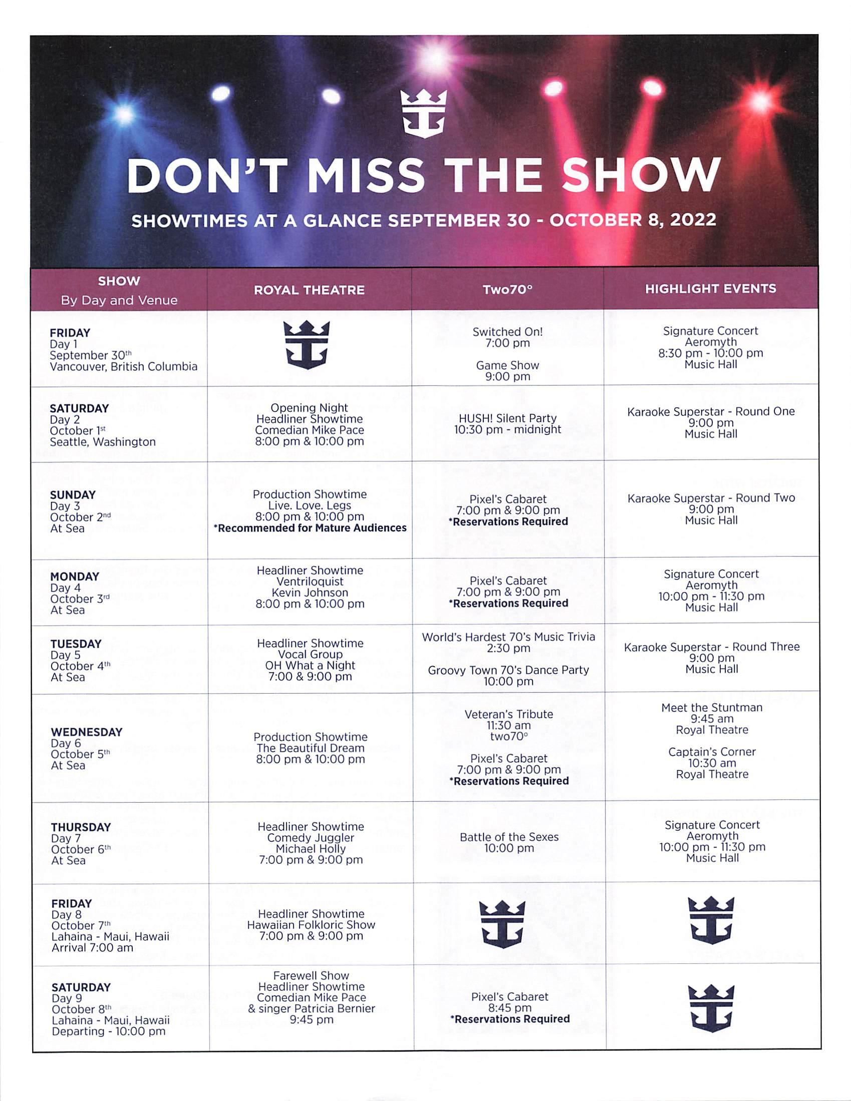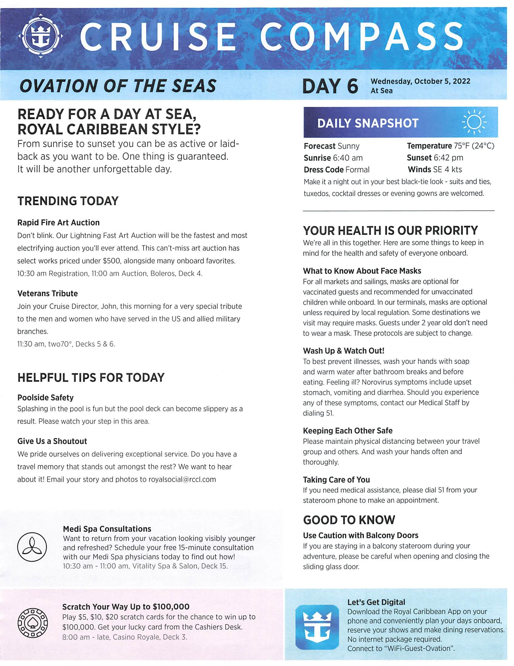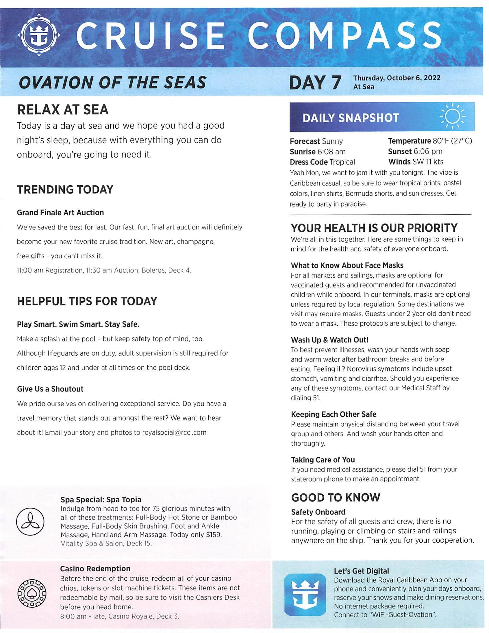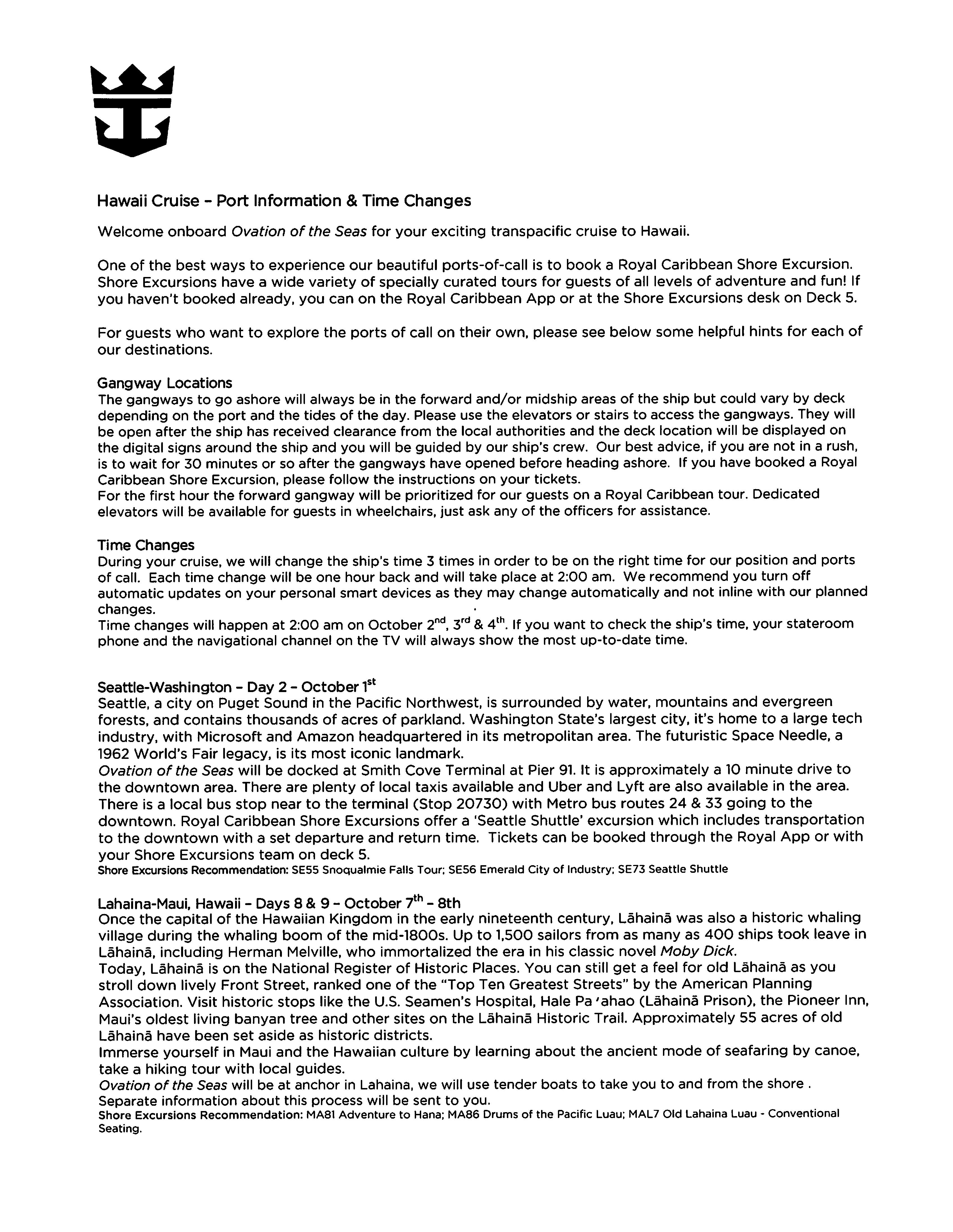 Ovation of the Seas 9-night Hawaii Cruise Compass - September 30, 2022