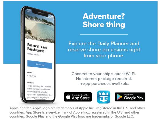 Want to book a shore excursion right now? You can research, reserve a tour, and receive instant confirmation right on your phone. Book today using the Royal Caribbean app or visit the Shore Excursions Desk, Deck 5