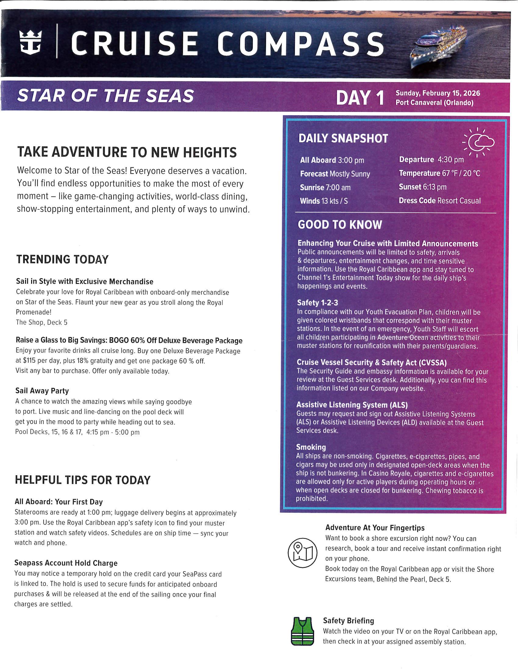 Star of the Seas 7-night Western Caribbean and Perfect Day Cruise Compass - February 15, 2026
