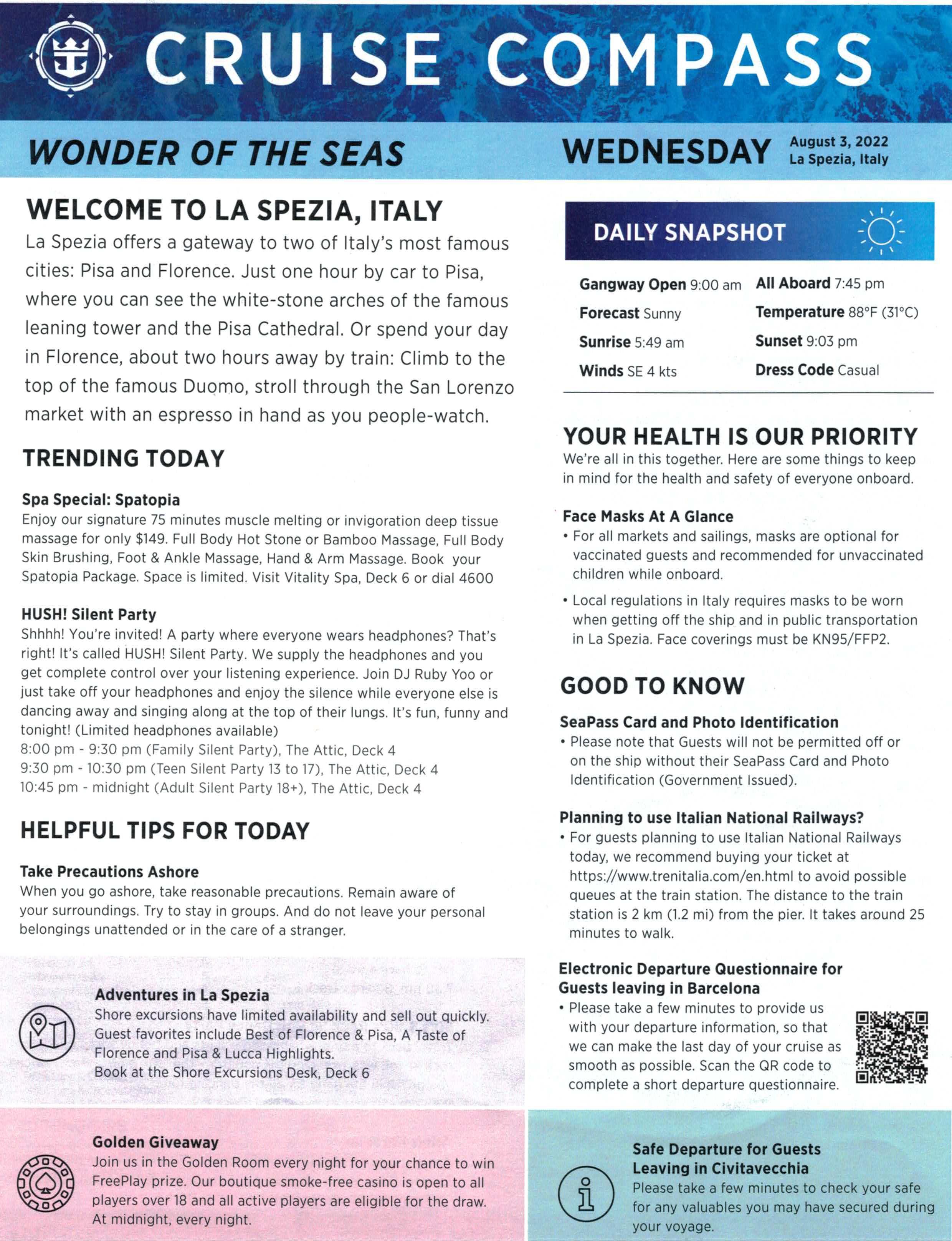 Wonder of the Seas 7-nights Western Mediterranean Cruise Compass - July 31, 2022