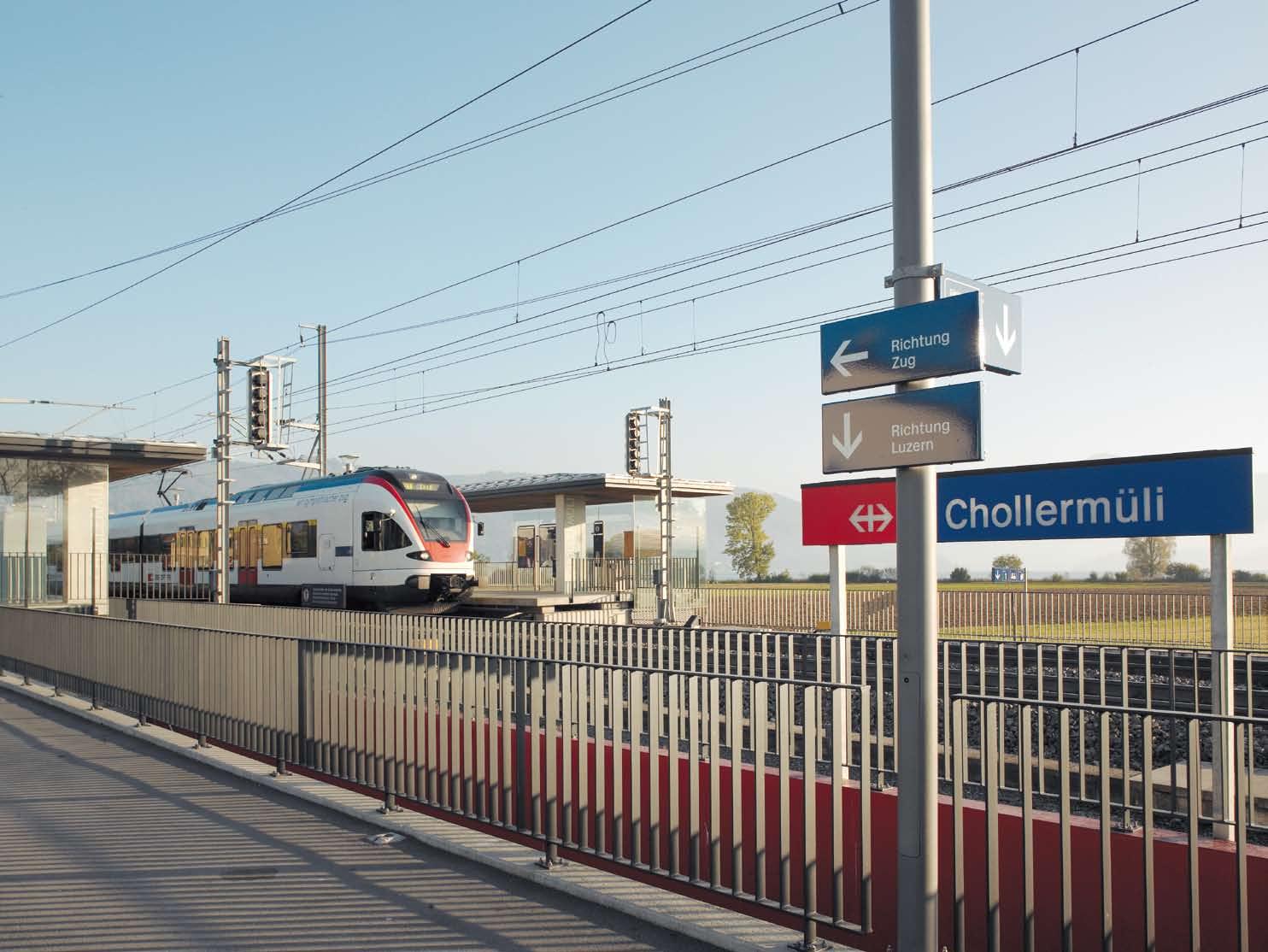 Das Projekt ‹Stadtbahn Zug› startete die kantonale Volkswirtschaftsdirektion 1996. Fünf Jahre später sagte das Volk Ja dazu – und spendierte 67 Millionen Franken für den Ausbau der Bahn-Infrastruktur. Drei Jahre später war der Kanton bereit für ‹Bahn 2000›. Politiker und Planer hatten rechtzeitig erkannt, dass das nationale Grossprojekt auf die Bedürfnisse des öffentlichen Verkehrs in der Region heruntergebrochen werden musste. Im späten 19. Jahrhundert war das Schienennetz Baar (Sihl brugg)–Zug–Rotkreuz (Luzern)–Walchwil (Arth-Goldau) angelegt worden. Darauf legte der Kanton zwei Stadtbahnlinien und baute neun neue Haltestellen. So entstand das neue Rückgrat des öffentlichen Verkehrs. Betrieben werden sollte das Netz nicht mit altem, klapprigem Rollmaterial. Die SBB bestellten für die Stadtbahn Zug zwölf ‹Flirt›-Niederflurkombinationen aus der Stadler-Rail-Fahrzeugschmiede – standesgemässe ÖV-Gefährte für den laut UBS wirtschaftlichen «Wachstumsleader der Schweiz». Der Flirt mit der Stadtbahn wurde mühsamer als gedacht. Am 12. Dezember 2004 war Fahrplanwechsel zur ‹Bahn 2000› und Auftakt zur Stadtbahn Zug. Politiker, Planer, Bevölkerung und Medien freuten sich und feierten den SBahn-Start. Der Kater kam wenige Tage später: «Flirt führt in Verspätungen», meldete die Lokalzeitung. Danach folgten schlechte Schlagzeilen: überfüllte Züge, Informationssystem mit Tücken, arge Startschwierigkeiten. Doch das waren Peanuts. Hauptsache, die Stadtbahn Zug fuhr. Für den öffentlichen Verkehr im Kanton ein «Quantensprung», stellte der Regierungsrat fest, denn: «Mit der Einführung der Stadtbahn und der konsequenten Ausrichtung des Bus netzes auf die Stadtbahn konnte das Angebot des öffentlichen Verkehrs im ganzen Kanton und auch über dessen Grenzen hinaus markant verbessert werden.»
