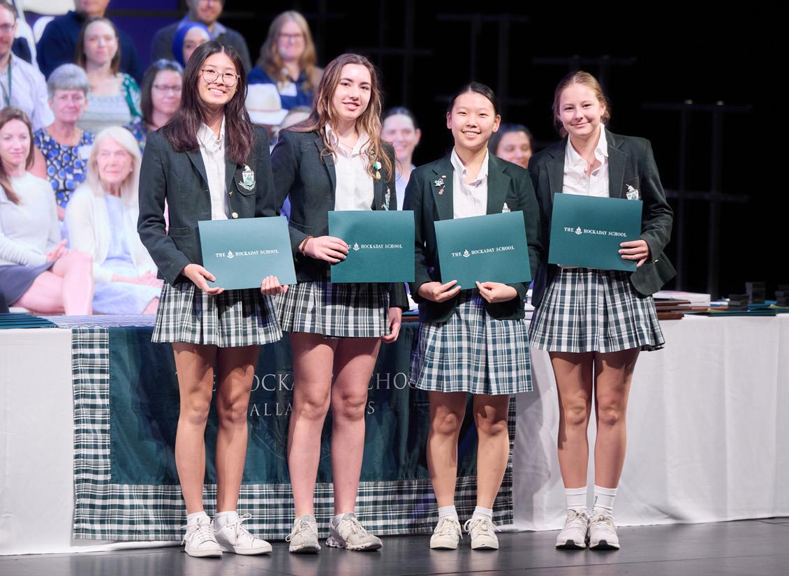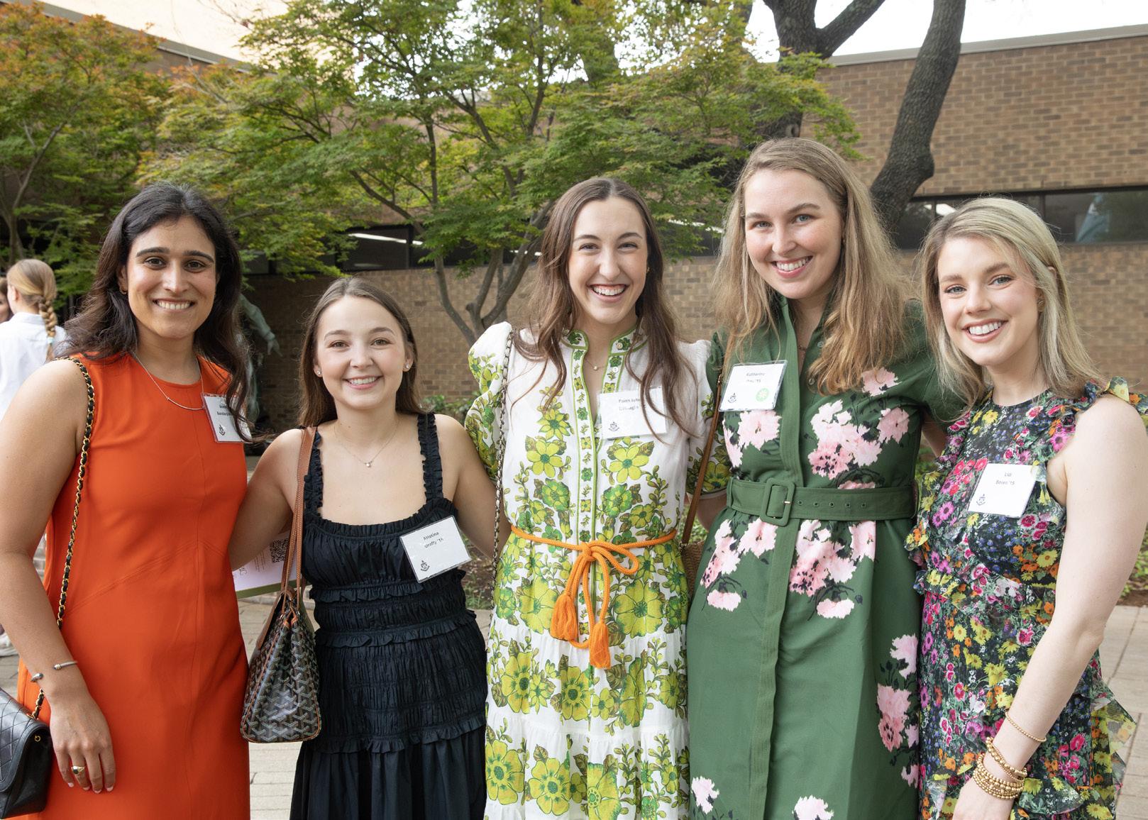 Since 1959, members of the Senior Class have been nominated by faculty and peers for this distinguished award, which is given at a special ceremony near Miss Ela Hockaday's birthday in March. The recipients embody the Four Cornerstones of Character, Courtesy, Scholarship, and Athletics. The 2025 recipients of the Founder’s Day award are (left to right) Alexa Muñoz, Anjy Fadairo, and Rayna Li Dr. Anna Rosenblatt '06, (below left) spoke at the ceremony. Also pictured are Eugene McDermott Head of School Dr. Laura Leathers (second from left) and Jimieka Rose Oswald '00, (far right) President of the Alumnae Association.