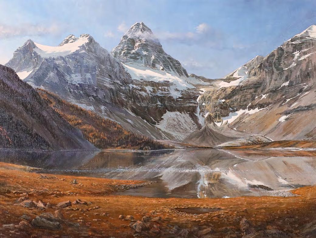 MOUNT ROBSON - MORNING LIGHT (LOOKING UP THE ROBSON RIVER); 2015 oil on wood panel