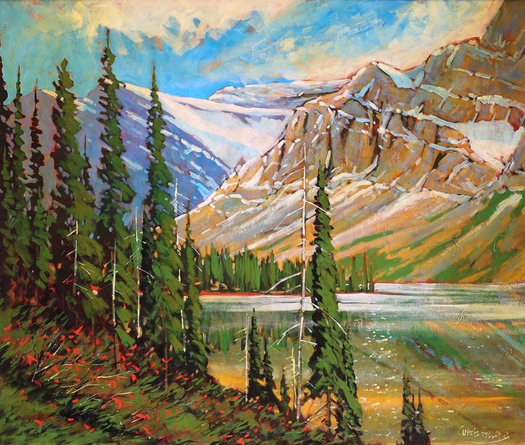 BY LAKE MINNEWANKA; 2004 oil on wood panel