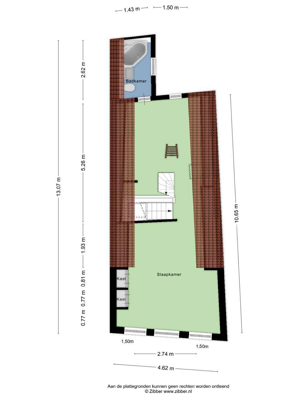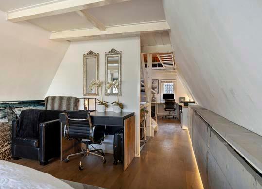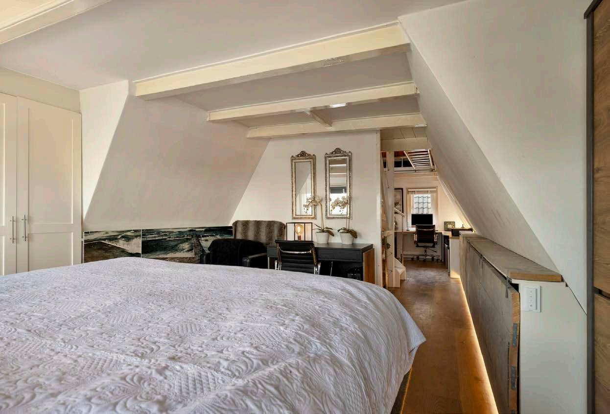De trap in de woonkamer brengt je naar de derde verdieping. Hier vind je een ruime slaapkamer aan de voorzijde, voorzien van een inbouwkast én een vijf meter lange opbergkast. Ook deze kamer is heerlijk licht, stil en heeft opnieuw dat prachtige uitzicht over de gracht. Verder is er op deze verdieping een L-vormige studeerhoek, compleet met bureau en een inbouwkast. Of je nu thuiswerkt, studeert of op zoek bent naar een rustige plek om te lezen, deze ruimte biedt het allemaal. Ook is het mogelijk om deze ruimte af te sluiten en een tweede slaapkamer te realiseren met badkamer en-suite.