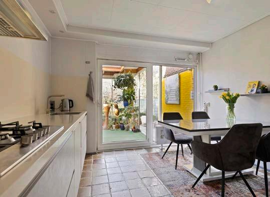 Vanuit de keuken loop je zo door naar de heerlijke serre. Hier geniet je elk seizoen van een kop thee, terwijl je geniet van de achtertuin welke fantastisch is aangelegd met veel groen, fijne zit plekjes en een houten berging voor bijvoorbeeld je fietsen of tuinspullen. De ligging aan het water maakt het plaatje compleet; perfect om je dag hier in alle rust te starten of af te sluiten.