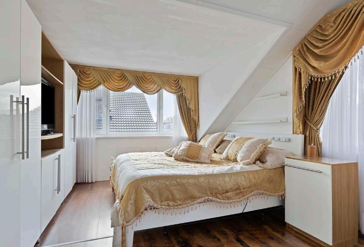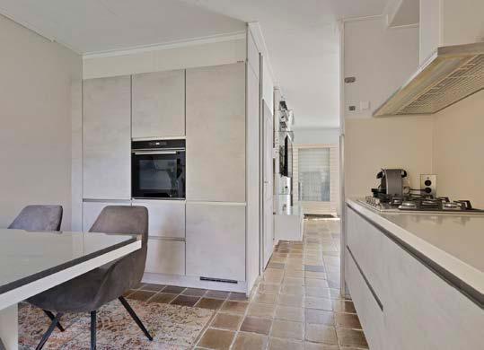 Grenzend aan de woonkamer vind je de open keuken. Deze keuken heeft niet alleen een praktische lay-out maar is ook nog eens van alle gemakken voorzien. Denk aan een 5-pits gasfornuis voor uitgebreid koken, een vaatwasser om in een handomdraai de boel weer schoon te maken en een koelkast plus vriezer met meer dan genoeg ruimte voor al jouw favoriete verse producten. Hier is er ook ruimte voor een eettafel, waar je urenlang gezellig kunt tafelen met vrienden of familie.