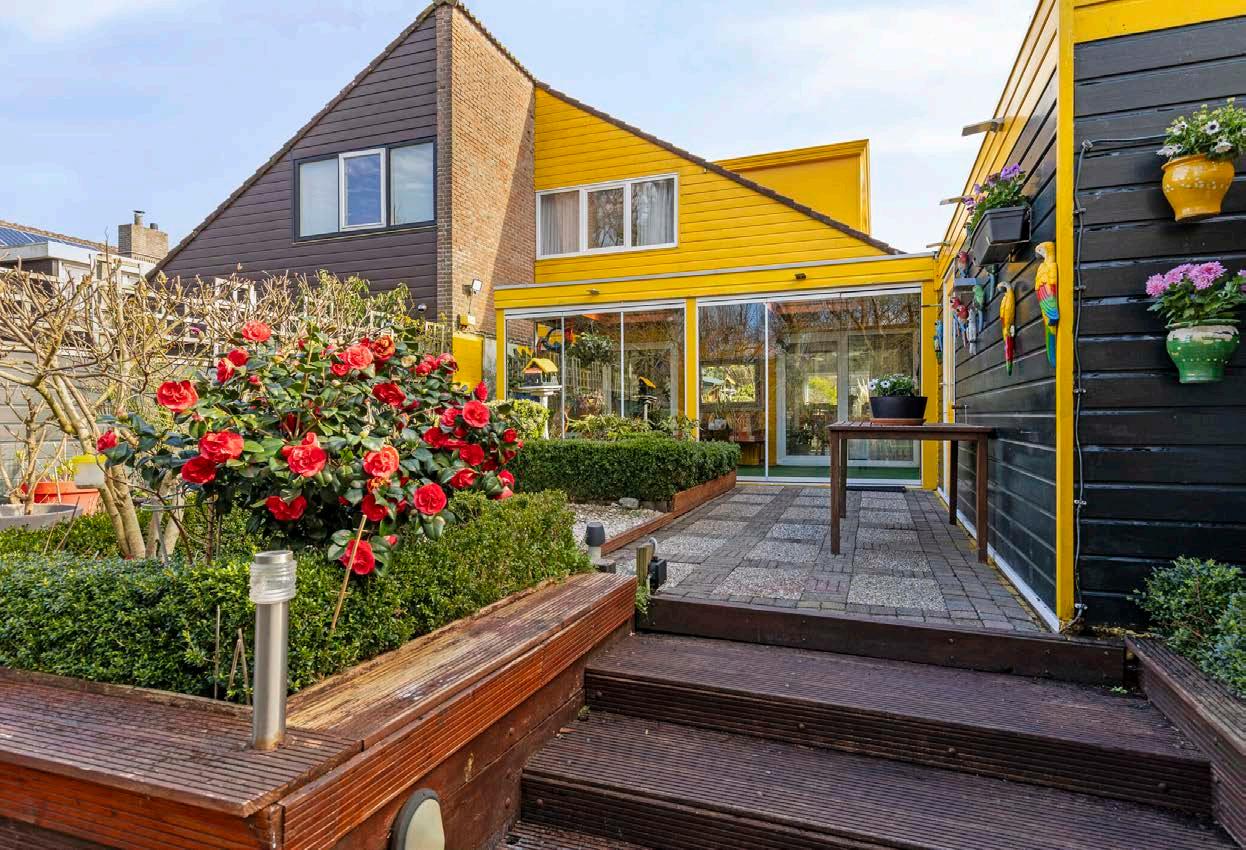 De woning is bovendien direct herkenbaar aan zijn karakteristieke gele kleur — uniek in de straat. Geel was de lievelingskleur van mijn man en geeft het huis een warme en vrolijke uitstraling.