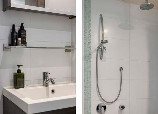 De nette badkamer beschikt over een royaal ligbad met regendouche.