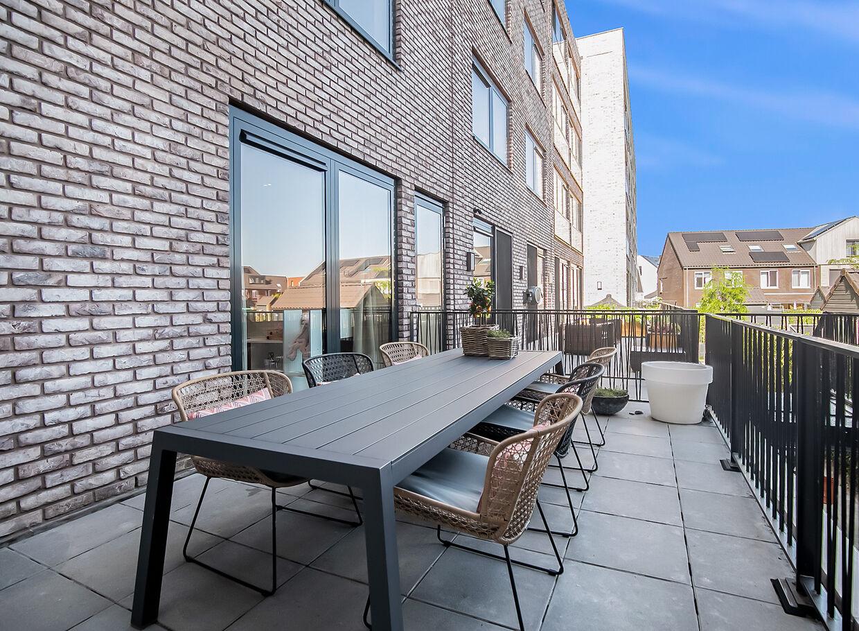 Het terras aan de achterzijde van het appartement biedt een heerlijke plek voor een diner op een warme avond. Beide terrassen zijn toegankelijk vanuit de keuken. De terrassen hebben een gezamenlijke oppervlakte van maar liefst 27m2.