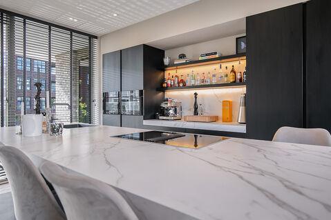 De luxe keuken is een echt het hart van het woongedeelte. Het is een waar genot om hier te koken of heerlijk te eten en te borrelen. De keuken is voorzien van exclusief inbouwapparatuur van MIELE, waaronder een wijnklimaatkast, een combioven, stoomoven, inductiekookplaat met geïntegreerde afzuiging, vaatwasser, koelkast en vriezer. De keuken is voorzien van een prachtig werkblad van keramiek.
