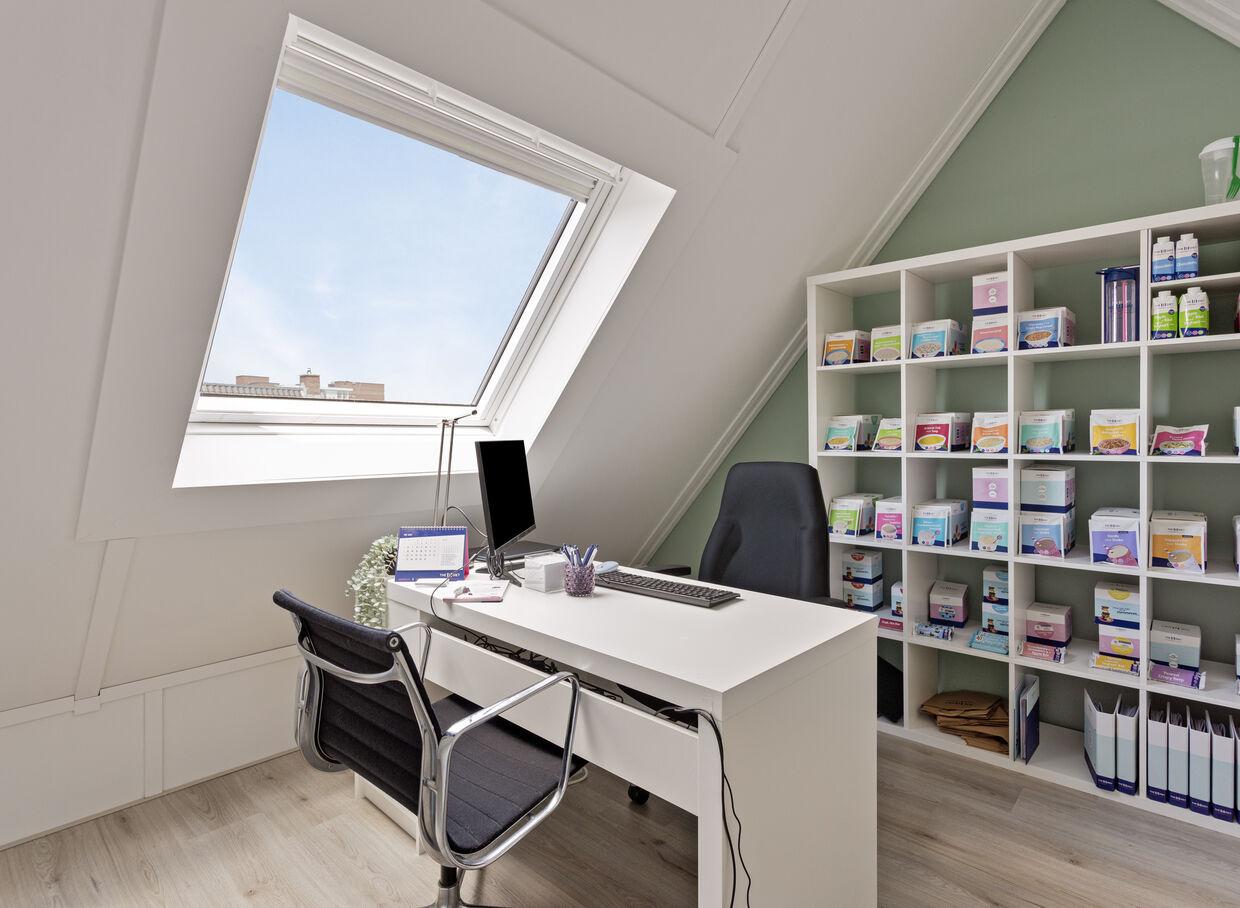 Ook de slaapkamer op 3e verdieping kan goed gebruikt worden als werkruimte.