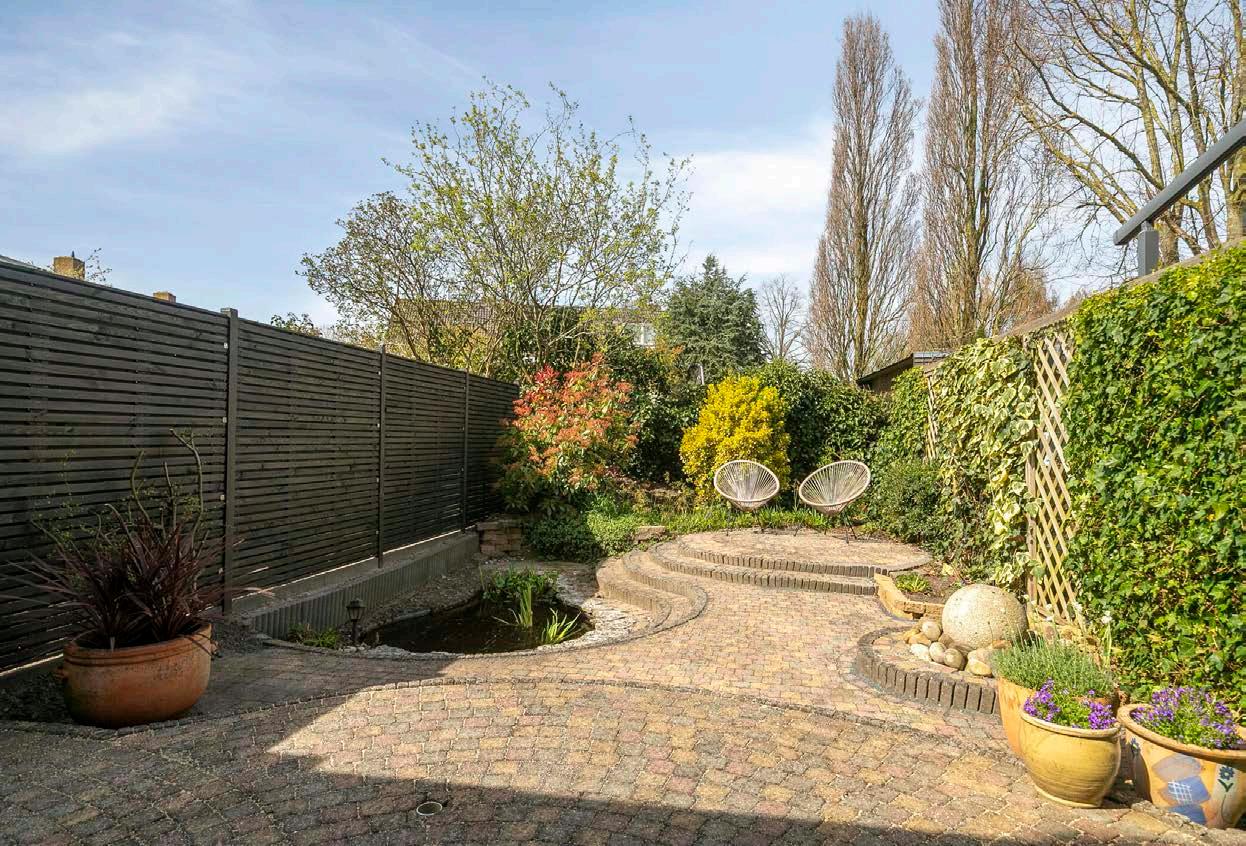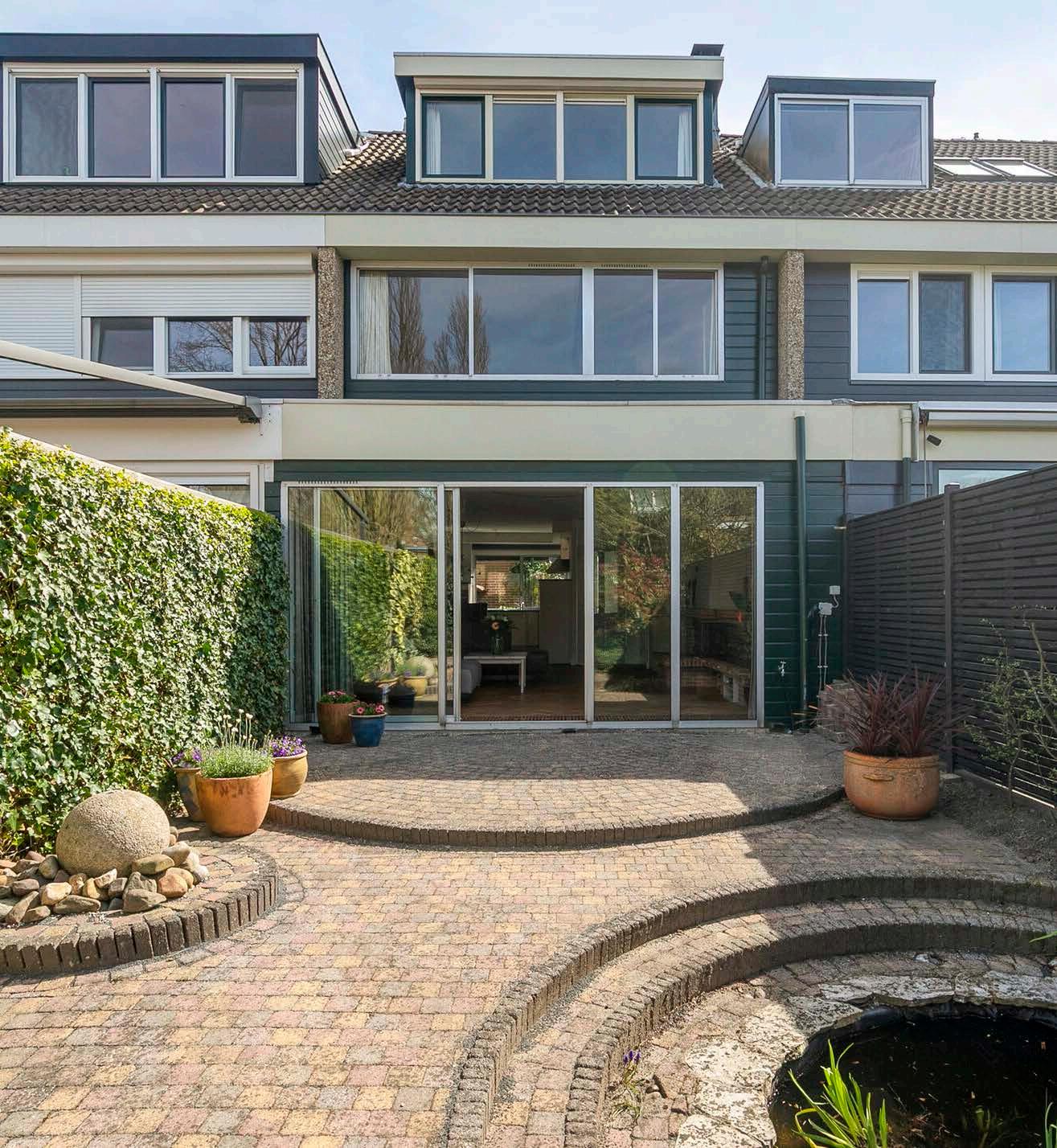 De achtertuin is gelegen op het westen, waardoor je hier volop van de middag- en avondzon kunt genieten. De tuin beschikt daarnaast over een vijvertje en biedt voldoende ruimte voor meerdere zitjes.