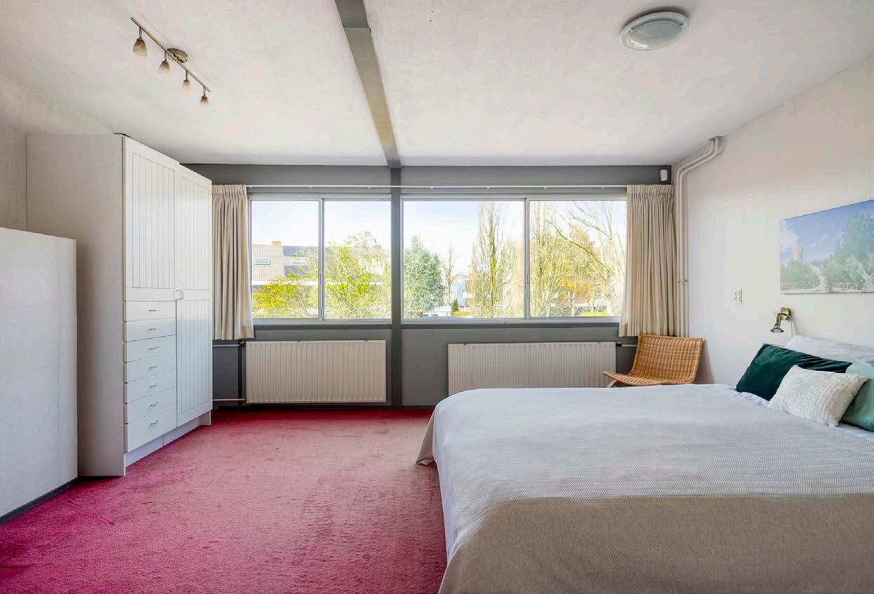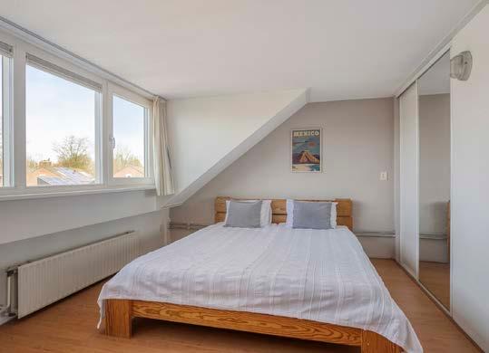 De tweede slaapkamer aan de voorzijde is eveneens goed van formaat en zeer geschikt als slaapkamer, kinderkamer of thuiswerkplek. Deze kamer beschikt over een eigen wasbak.