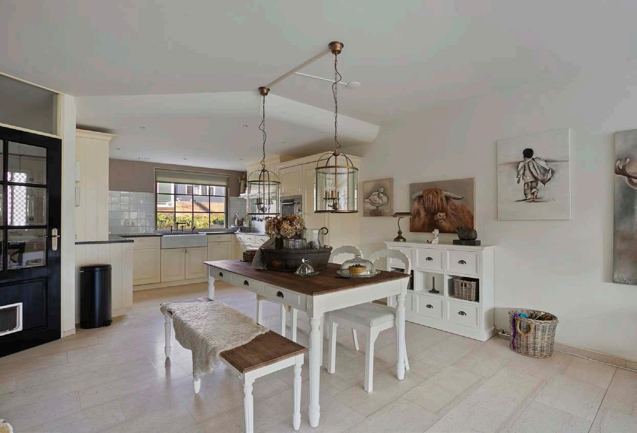 De ruime woonkamer, die uitkomt op de zonnige achtertuin, is een plek waar licht en ruimte samenkomen. Dankzij de uitbouw op de begane grond heb je hier alle ruimte voor gezellige familie- of vriendendiners. De vloerverwarming onder je voeten zorgt voor een aangenaam, gelijkmatige warmte, terwijl de open haard een knusse sfeer creëert op koude winteravonden.